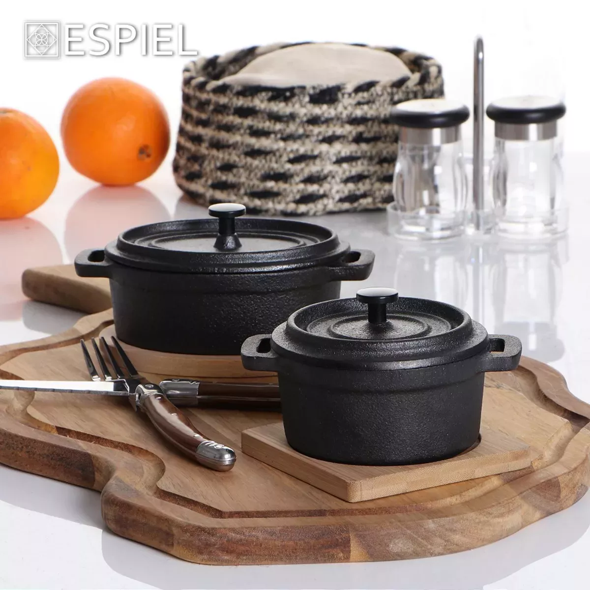 ΚΑΤΣΑΡΟΛΑ CAST-IRON ΜΑΥΡΗ 13Χ10Χ8ΕΚ 250ML ΜΕ ΒΑΣΗ BAMBOO ESPIEL
