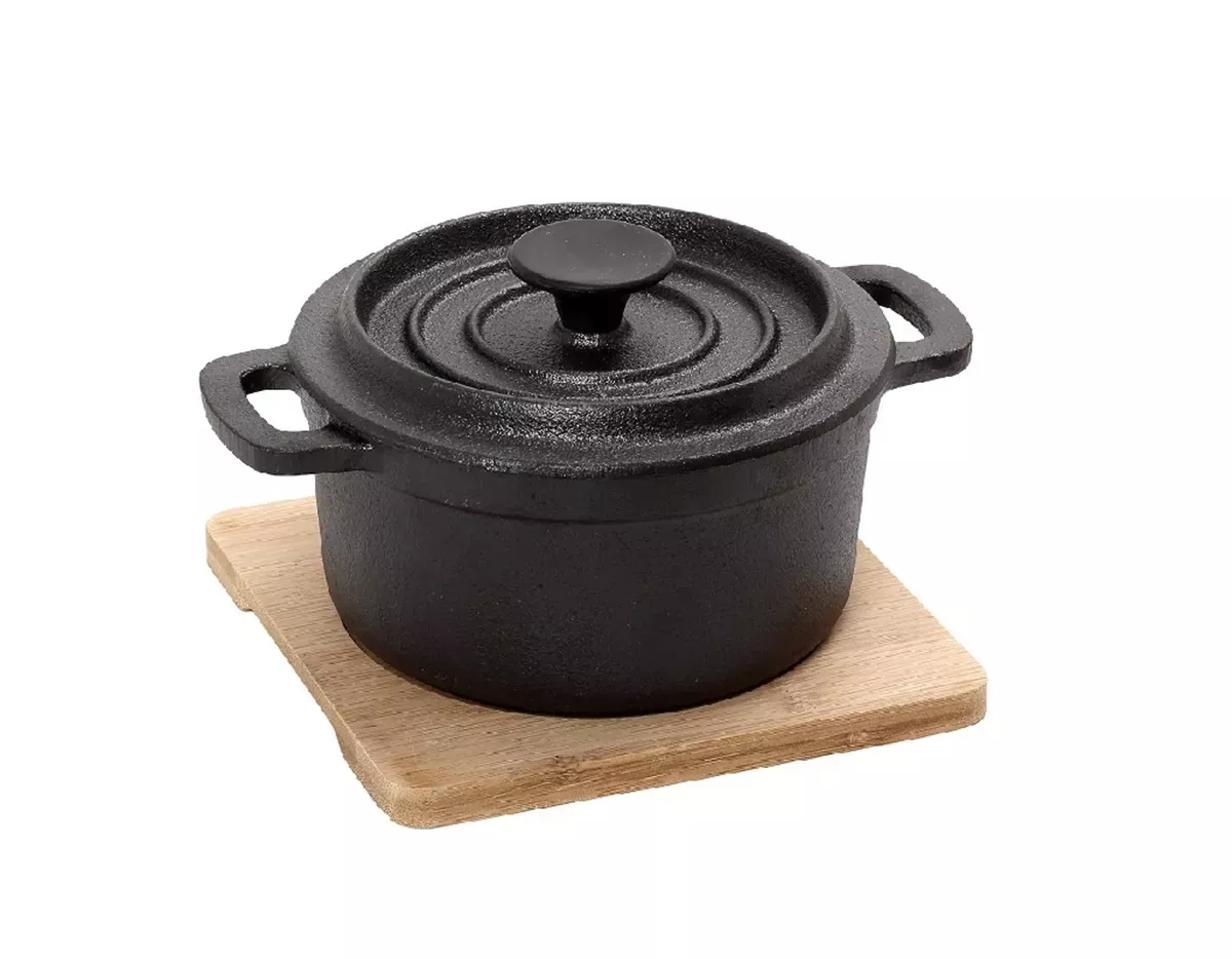 ΚΑΤΣΑΡΟΛΑ CAST-IRON ΜΑΥΡΗ 13Χ10Χ8ΕΚ 250ML ΜΕ ΒΑΣΗ BAMBOO