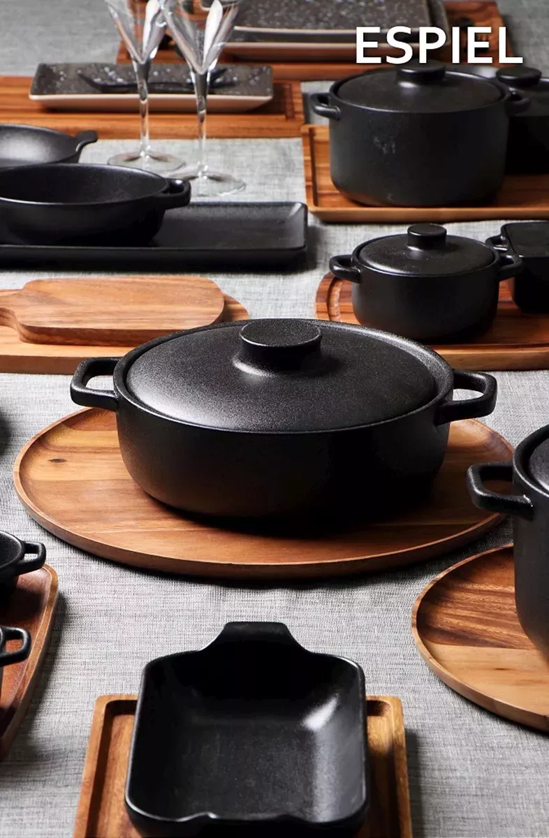 LAVA ΚΑΤΣΑΡΟΛΑΚΙ ΟΡΘ. STONEWARE ΜΑΥΡΟ 220ML 13(16 INCL. HANDLES)X8,8X5CM ESPIEL