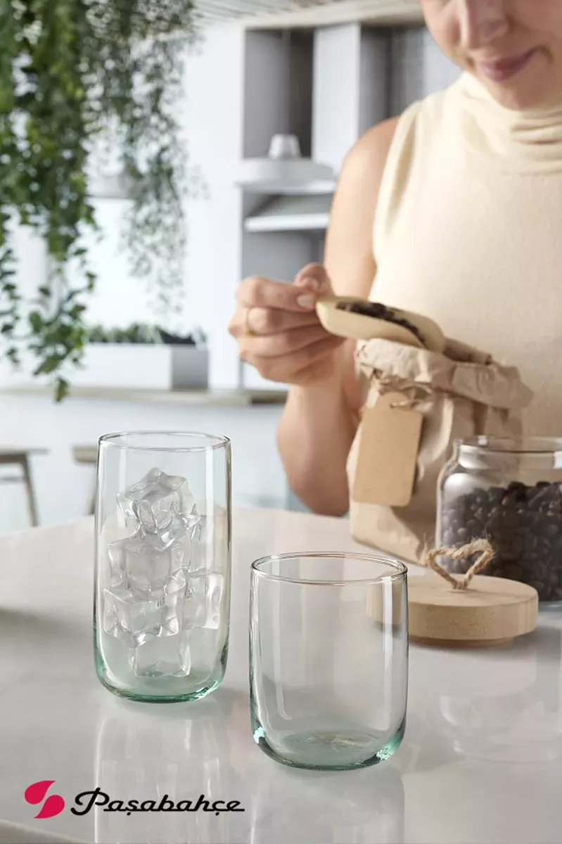 DIS. AWARE ICONIC WATER 280ML MADE OF REC. GLASS H:8,85 D:7CM P/1632 GB4.OB24… ESPIEL