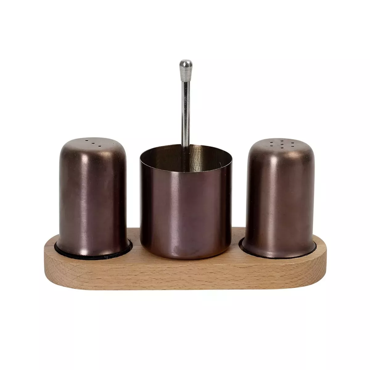 ΣΕΤ ΑΛΑΤΙ/ΠΙΠΕΡΙ/ΟΔΟΝΤΟΓΛΥΦΙΔΕΣ SS 18/10 PVD ΜΠΡΟΝΖΕ ΣΕ ΞΥΛ. ΒΑΣΗ 19X7X14,5EK