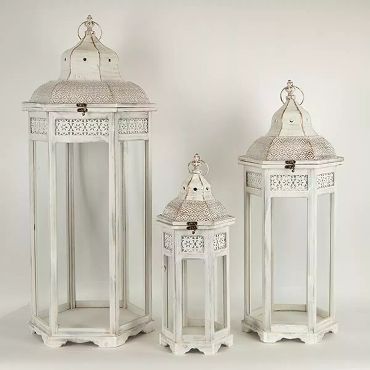 S/3 ΦΑΝΑΡΙΑ ΜΕΤΑΛΛΙΚΑ - ΞΥΛΙΝΑ ΛΕΥΚΑ 37.5x32x91cm /29.5x25.5x72cm /21.5x18.5x53cm Estheti