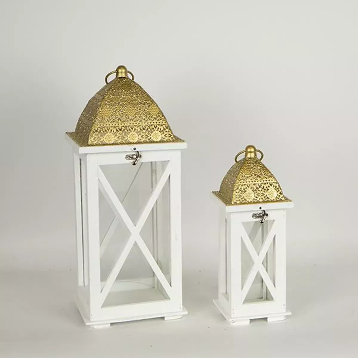 S/2 ΦΑΝΑΡΙΑ ΜΕΤΑΛΛΙΚA - ΞΥΛΙΝΑ ΛΕΥΚΑ 22x22x54.5cm/14.5x14.5x37.5cm Estheti