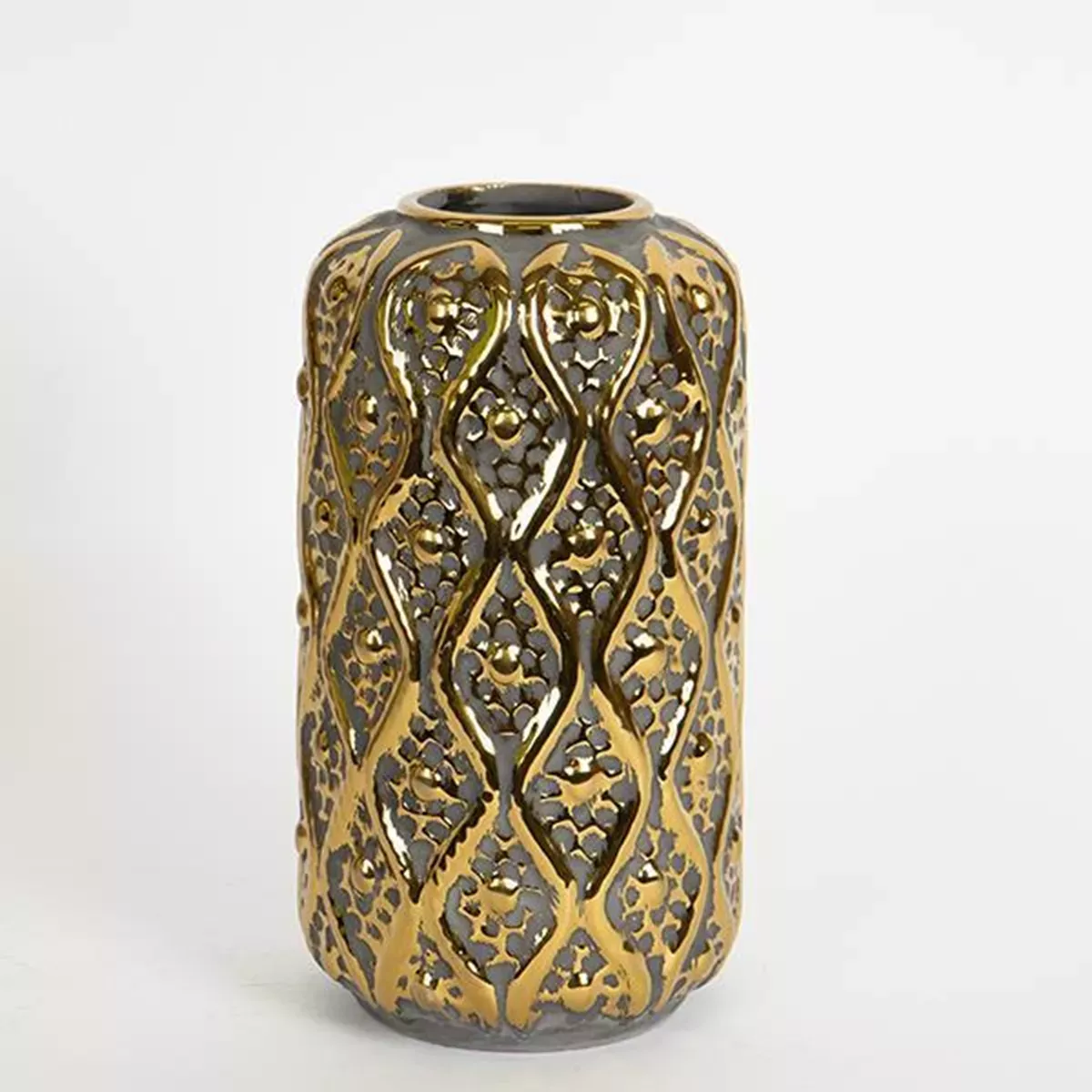 ΒΑΖΟ ΚΕΡΑΜΙΚΟ ΓΚΡΙ - ΧΡΥΣΟ 14.5x14.5x26cm