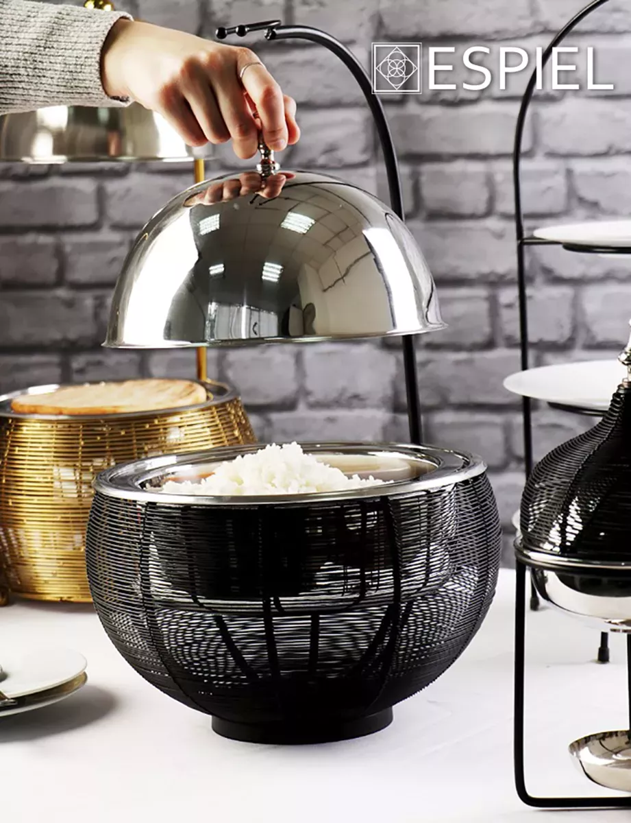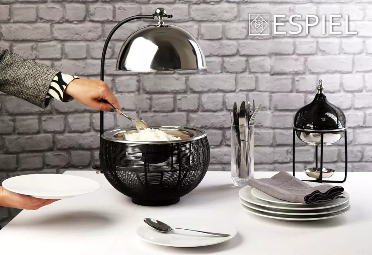 CHAFFING DISH ΒΑΣΗ ΣΤΗΡ. ΚΑΠ. ΚΑΙ ΔΙΠΛΟ ΔΟΧΕΙΟ SS/ΑΛΟΥΜ./ΣΙΔΗΡ. ΜΑΥΡΟ 4500ML GEL WAX 35Χ35Χ39-60,5ΕΚ ESPIEL