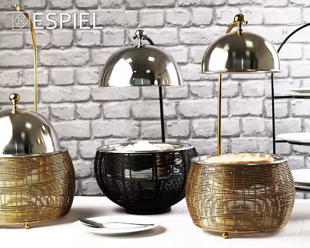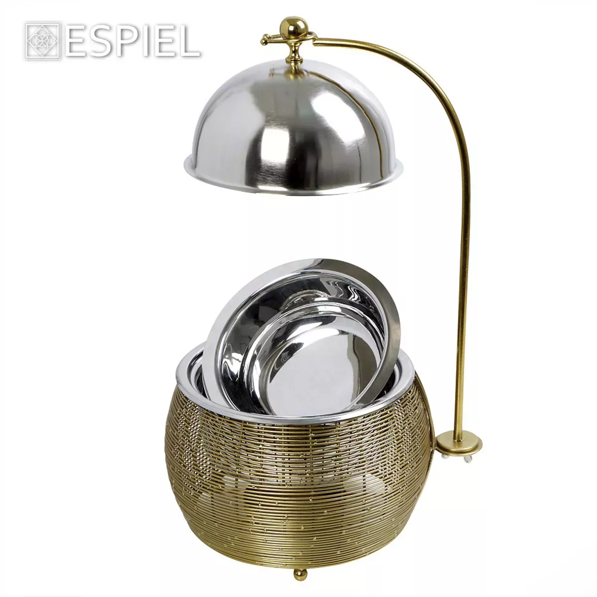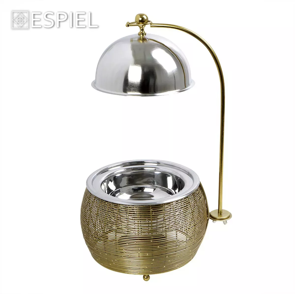 CHAFFING DISH ΜΕ ΒΑΣΗ ΣΤΗΡ. ΚΑΠ. ΚΑΙ ΔΙΠΛΟ ΔΟΧΕΙΟ SS/ΑΛΟΥΜ/ΣΙΔΗΡ. ΧΡΥΣΟ 1500ML GEL WAX 25Χ25Χ30-49ΕΚ ESPIEL