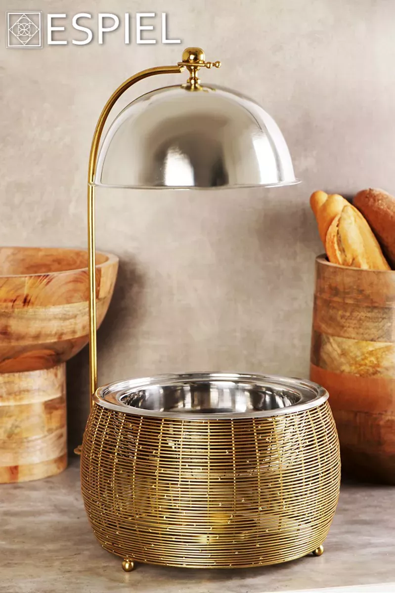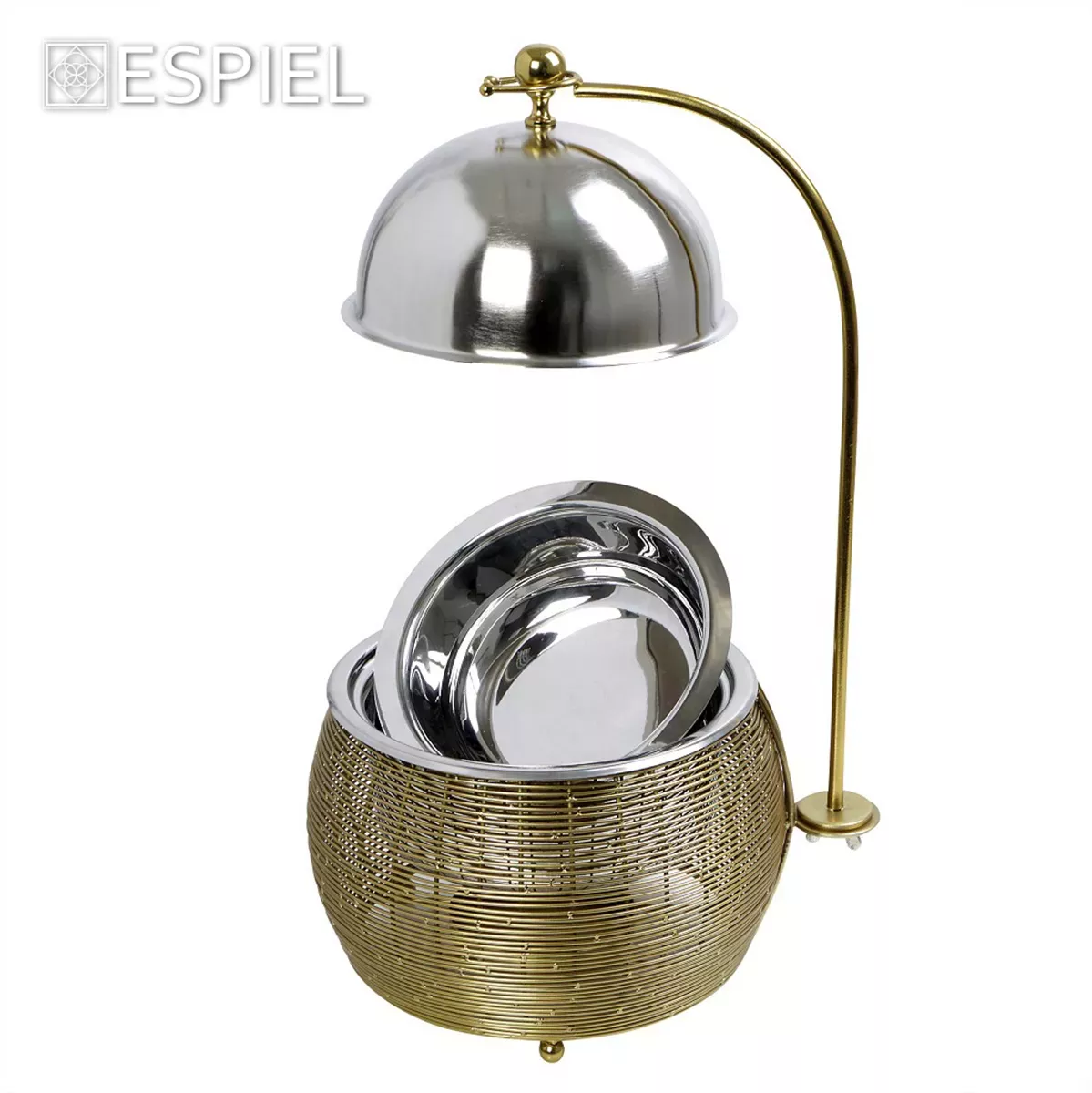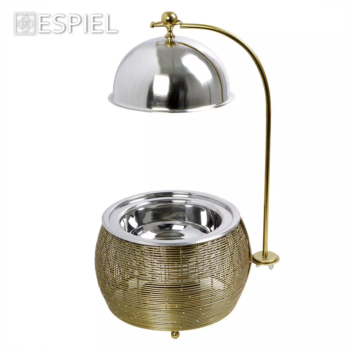 CHAFFING DISH ΜΕ ΒΑΣΗ ΣΤΗΡ. ΚΑΠ. ΚΑΙ ΔΙΠΛΟ ΔΟΧΕΙΟ SS/ΑΛΟΥΜ/ΣΙΔΗΡ. ΧΡΥΣΟ 2500ML GEL WAX 30Χ30Χ33-55ΕΚ ESPIEL