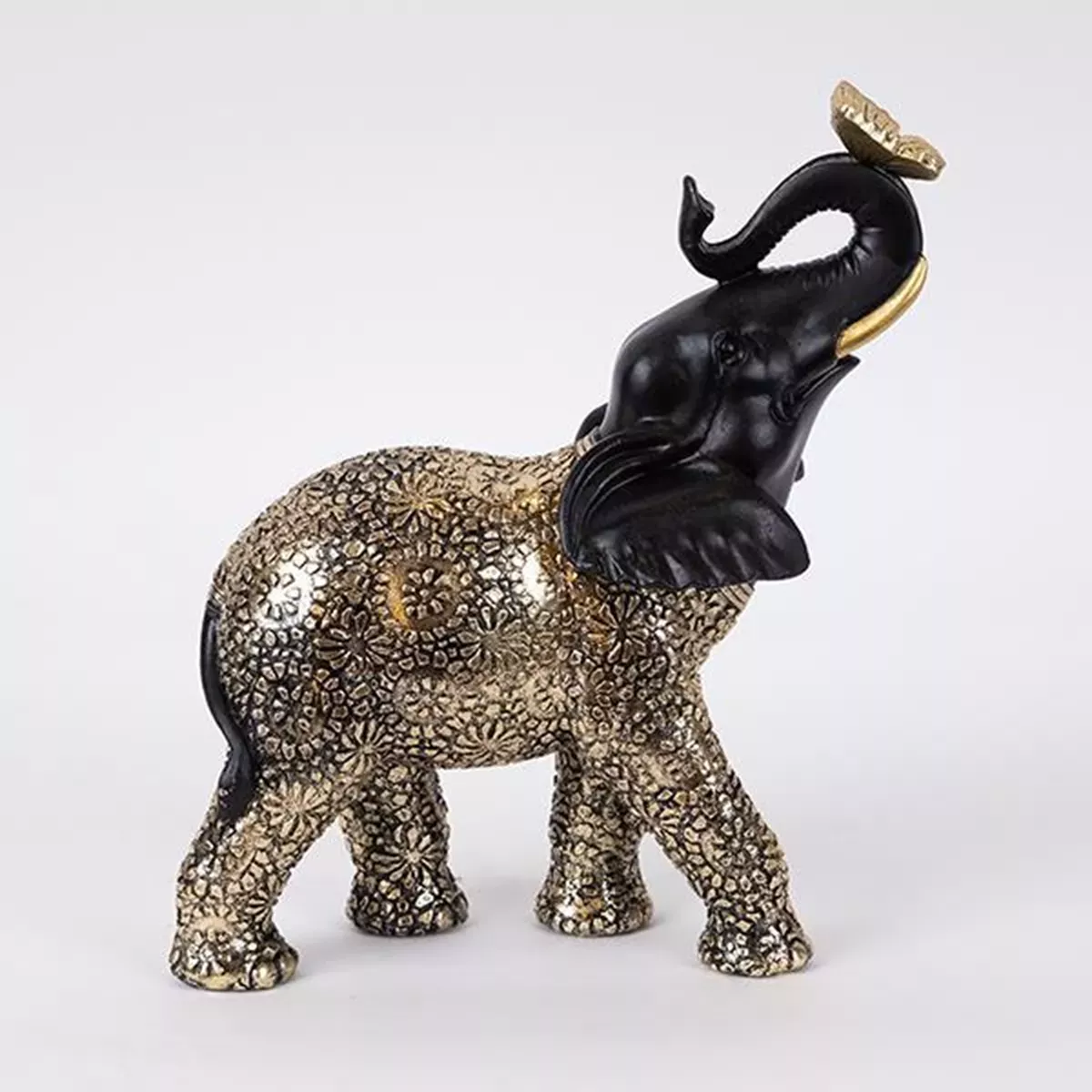 ΕΛΕΦΑΝΤΑΣ ΠΟΛΥΡΕΖΙΝ ΜΕ ΠΕΤΑΛΟΥΔΑ ΜΑΥΡΟΣ - ΧΡΥΣΟΣ 23x10x26cm Estheti