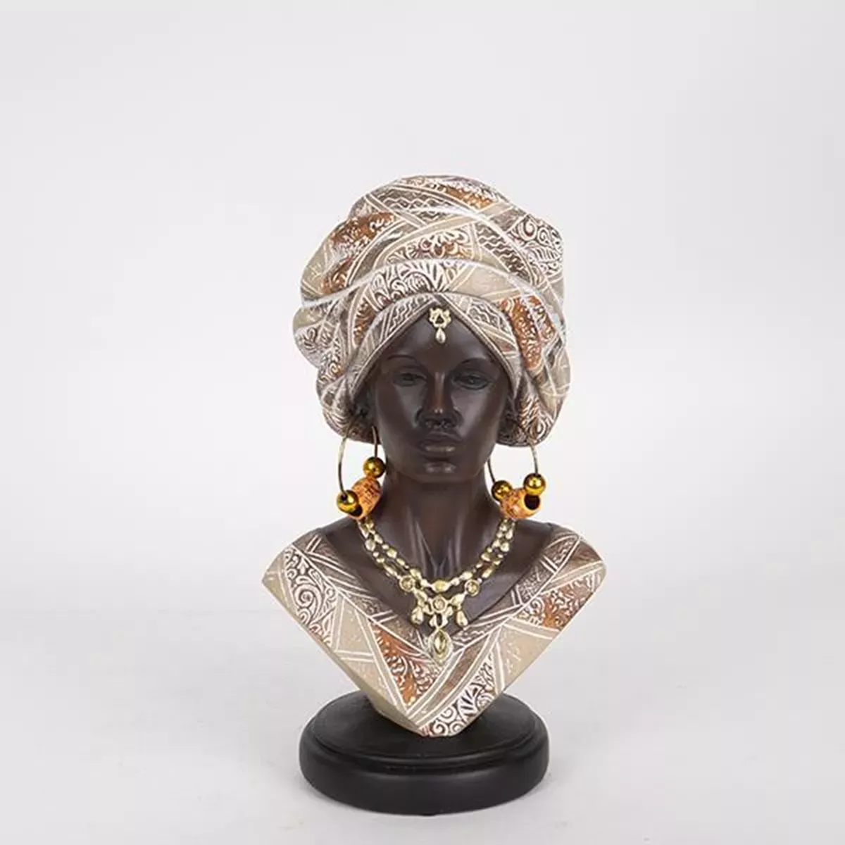 ΔΙΑΚΟΣΜΗΤΙΚΟ ΓΛΥΠΤΟ ΡΕΖΙΝ ΓΥΝΑΙΚΑ ΜΕ ΤΟΥΡΜΠΑΝΙ ΚΑΦΕ-ΛΕΥΚΟ-ΧΡΥΣΟ 15x12x26.5cm Estheti