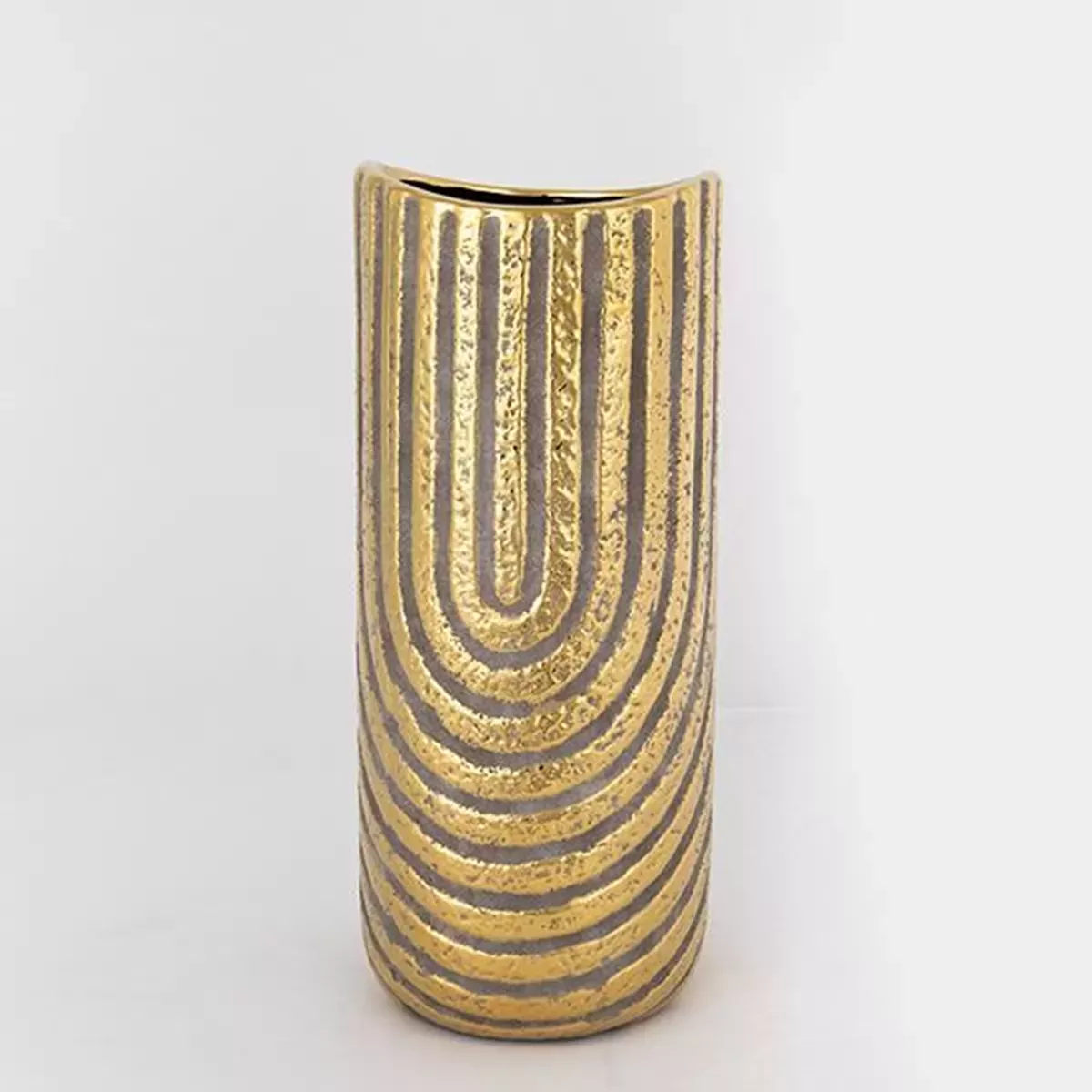 ΒΑΖΟ ΚΕΡΑΜΙΚΟ ΓΚΡΙ - ΧΡΥΣΟ 13.5x13.5x28cm