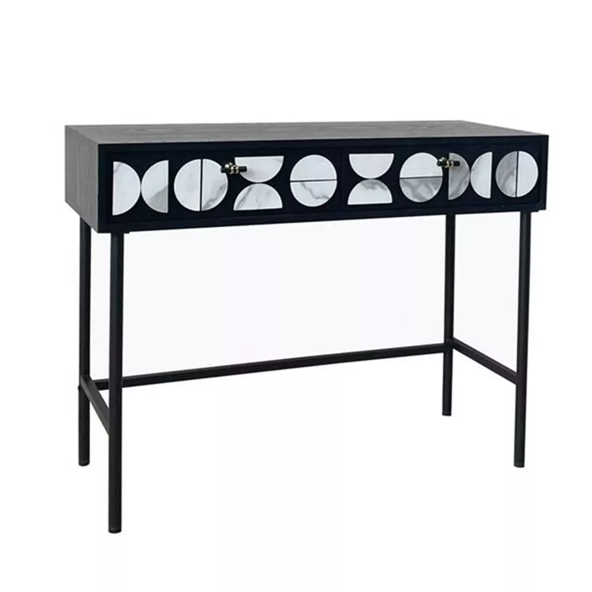 ΚΟΝΣΟΛΑ, ΞΥΛΙΝΗ, ΜΑΥΡΗ-ΛΕΥΚΗ, 2 ΣΥΡΤΑΡΙΑ ΜΕ ΣΧΕΔΙΟ, 100x40x77cm Estheti