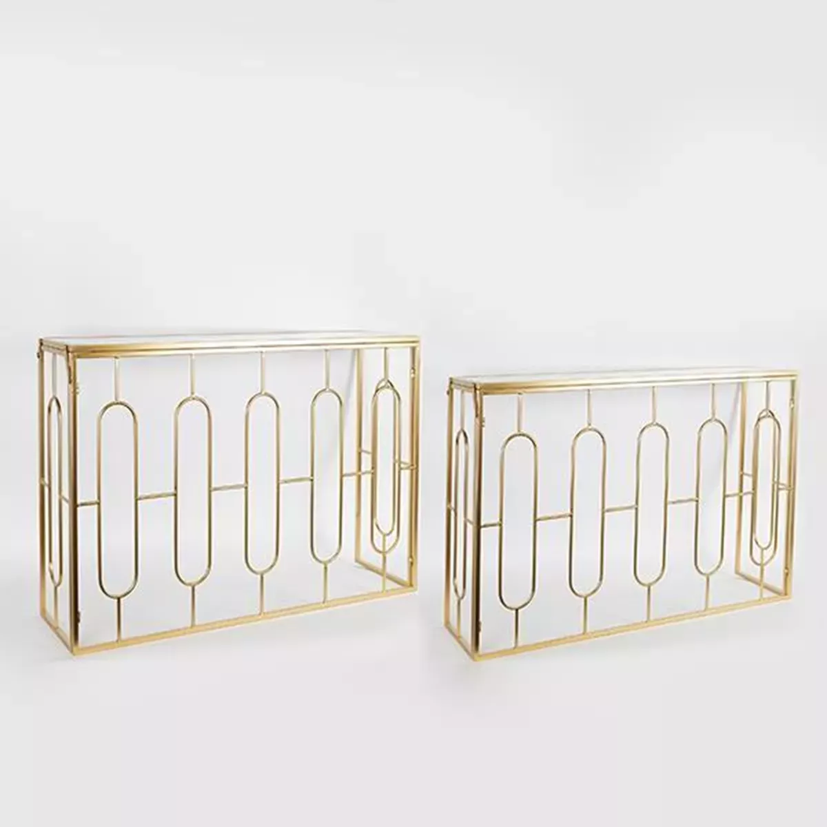 ΚΟΝΣΟΛΑ, ΜΕΤΑΛΛΙΚΗ, ΧΡΥΣΗ, ΕΠΙΦΑΝΕΙΑ ΓΥΑΛΙ, ΣΕΤ 2ΤΜΧ, 107x35x79.5cm, 102x29.5x71cm