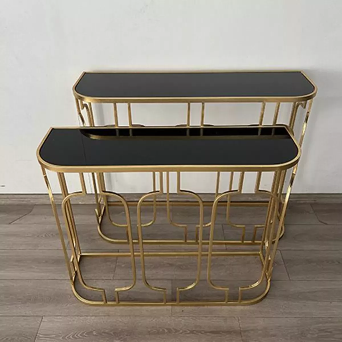 ΚΟΝΣΟΛΑ, ΜΕΤΑΛΛΙΚΗ, ΧΡΥΣΗ, ΕΠΙΦΑΝΕΙΑ ΓΥΑΛΙ ΜΑΥΡΟ,  ΣΕΤ 2ΤΜΧ, 100x30x82cm, 90x27x73cm