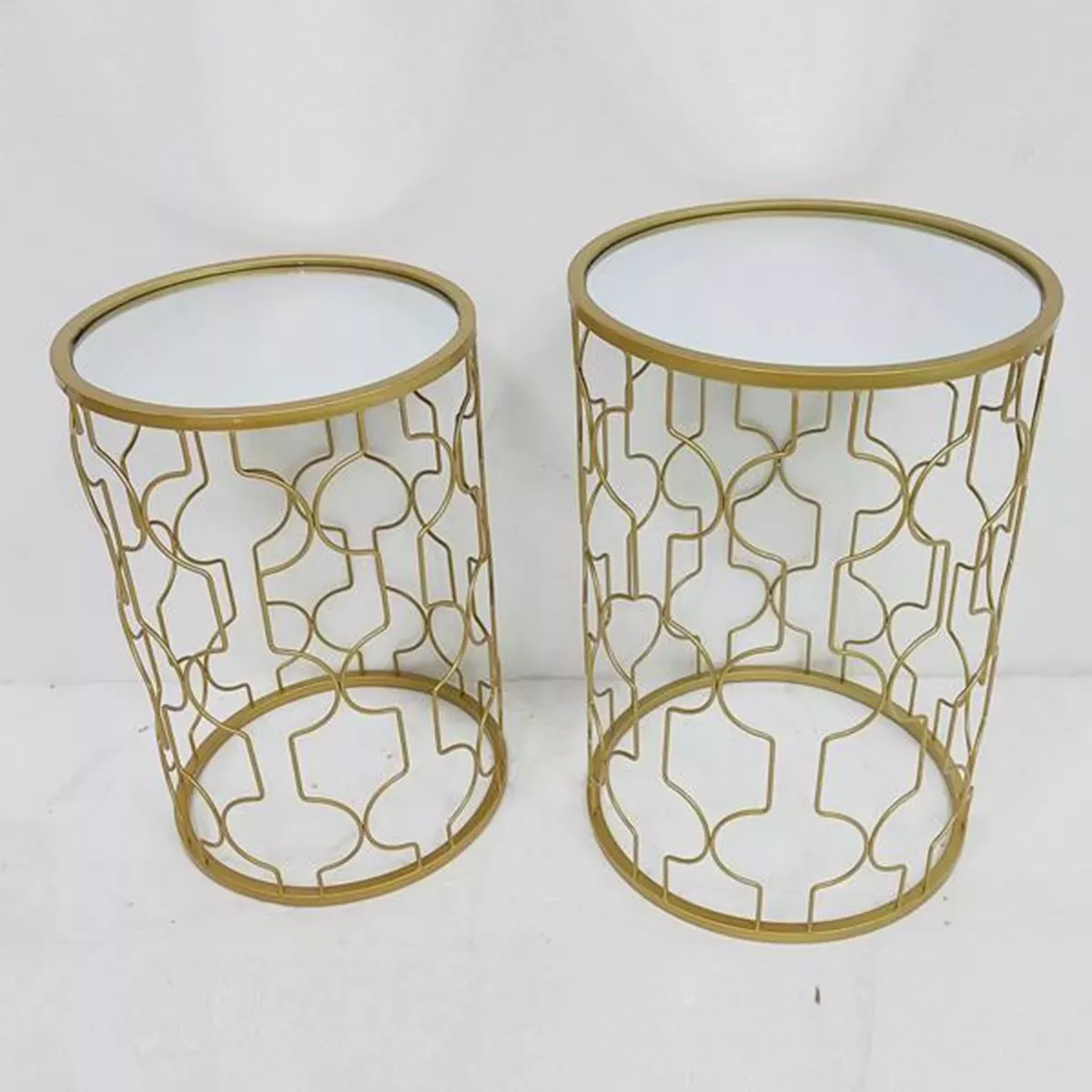ΤΡΑΠΕΖΑΚΙ ΒΟΗΘΗΤΙΚΟ, ΣΕΤ 2ΤΜΧ, ΜΕΤΑΛΛΙΚΟ, ΧΡΥΣΟ, ΜΕ ΚΑΘΡΕΦΤΗ, L:38x55.5cm S:33x50.5cm