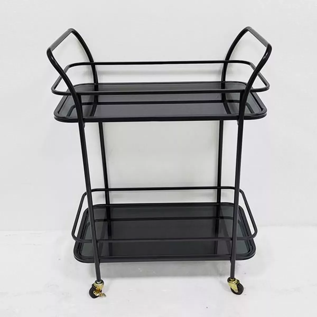 ΤΡΟΛΕΙ, ΜΕΤΑΛΛΙΚΟ, ΜΑΥΡΟ, ΜΕ 2 ΕΠΙΠΕΔΑ ΚΑΙ ΓΥΑΛΙ, ΜΕ ΡΟΔΑΚΙΑ, 54x33x84cm Estheti