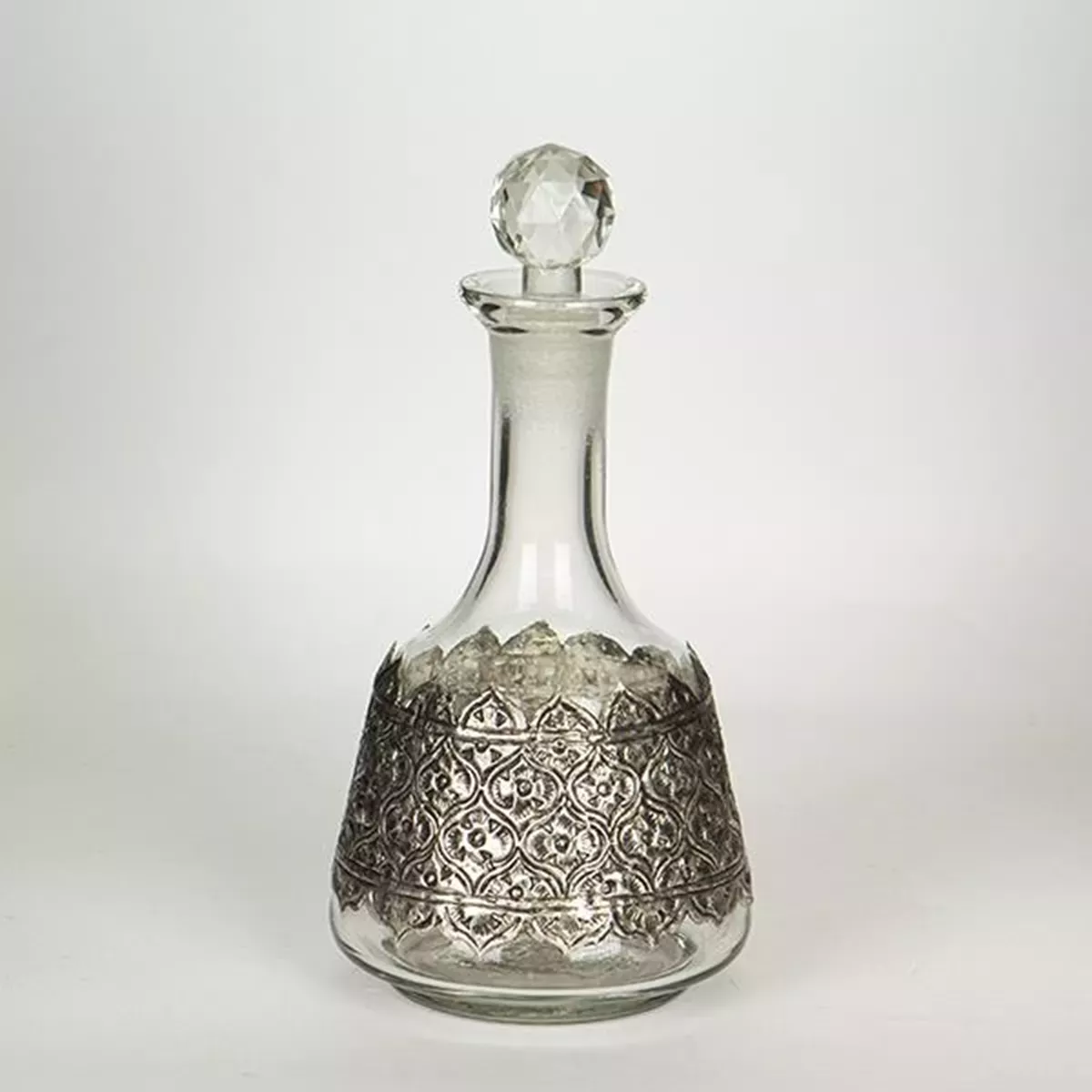 ΚΑΡΑΦΑ, ΜΕ ΜΕΤΑΛΛΙΚΗ ΔΙΑΚΟΣΜΗΣΗ, ΓΥΑΛΙ- ΜΕΤΑΛΛΟ, ΔΙΑΦΑΝΟ-ΑΣΗΜΙ, 24x13cm Estheti