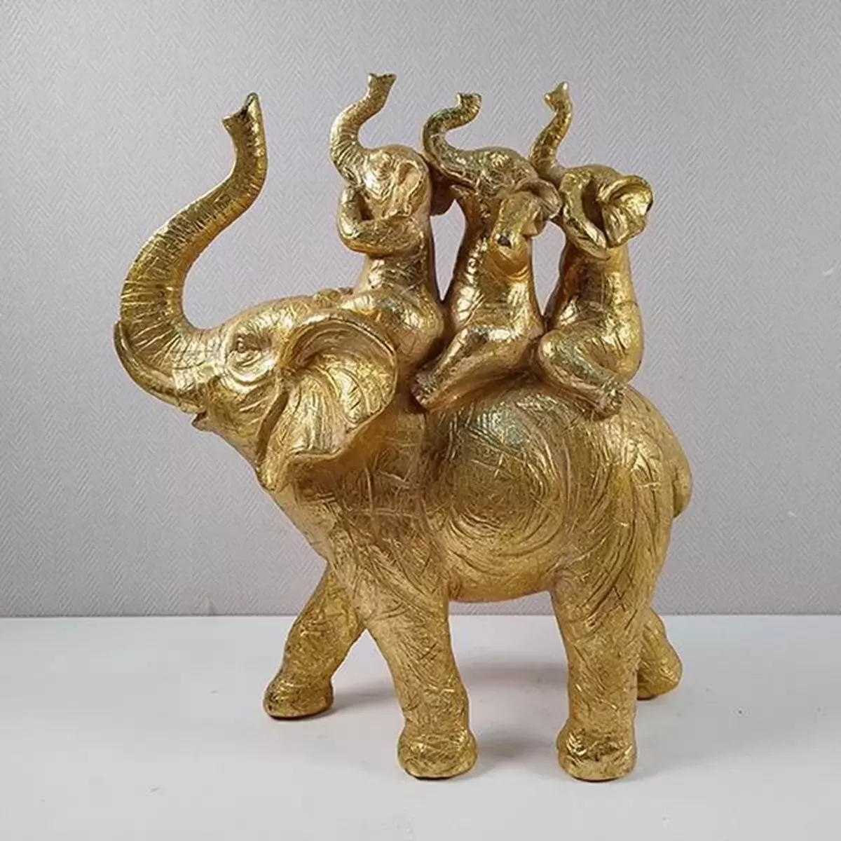ΕΠΙΤΡΑΠΕΖΙΟ ΔΙΑΚΟΣΜΗΤΙΚΟ, ΕΛΕΦΑΝΤΑΣ ME ΕΛΕΦΑΝΤΑΚΙΑ, ΧΡΥΣΟΣ-ΓΚΡΙ 23.5x9x26cm Estheti