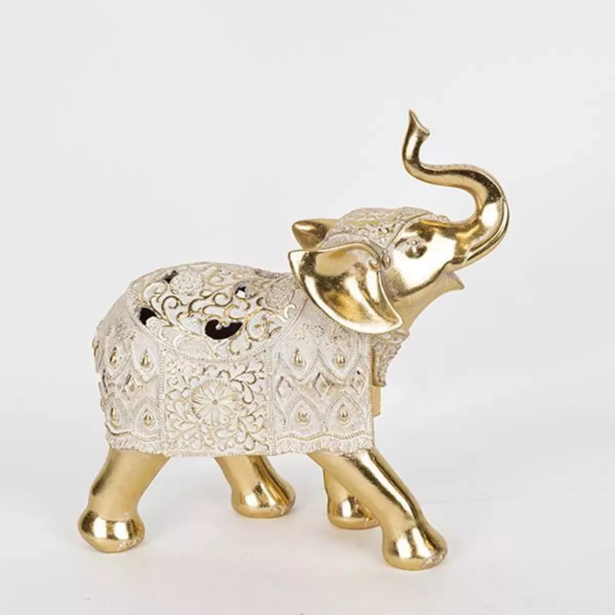 ΕΠΙΤΡΑΠΕΖΙΟ ΔΙΑΚΟΣΜΗΤΙΚΟ, ΕΛΕΦΑΝΤΑΣ, ΠΟΛΥΡΕΣΙN, ΑΣΠΡΟ-ΧΡΥΣΟ, 27x10x27.5cm Estheti