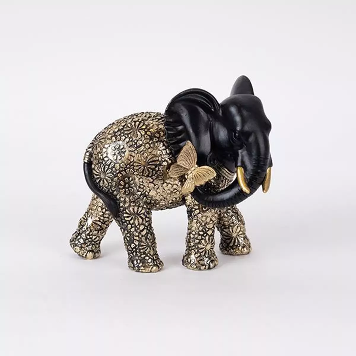 ΕΠΙΤΡΑΠΕΖΙΟ ΔΙΑΚΟΣΜΗΤΙΚΟ, ΕΛΕΦΑΝΤΑΣ ΜΕ ΠΕΤΑΛΟΥΔΑ, ΠΟΛΥΡΕΣΙN, ΜΑΥΡΟ & ΧΡΥΣΟ, 19x11x17cm Estheti
