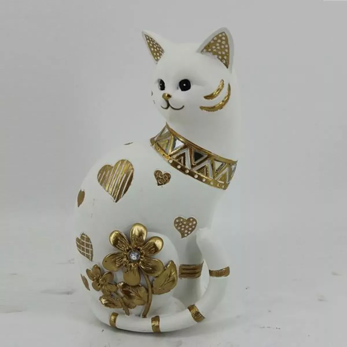 ΕΠΙΤΡΑΠΕΖΙΟ ΔΙΑΚΟΣΜΗΤΙΚΟ, ΓΑΤΑ ΜΕ ΚΑΡΔΙΕΣ & ΛΟΥΛΟΥΔΙΑ, ΛΕΥΚΗ & ΧΡΥΣΗ, 10x7x17.5cm Estheti