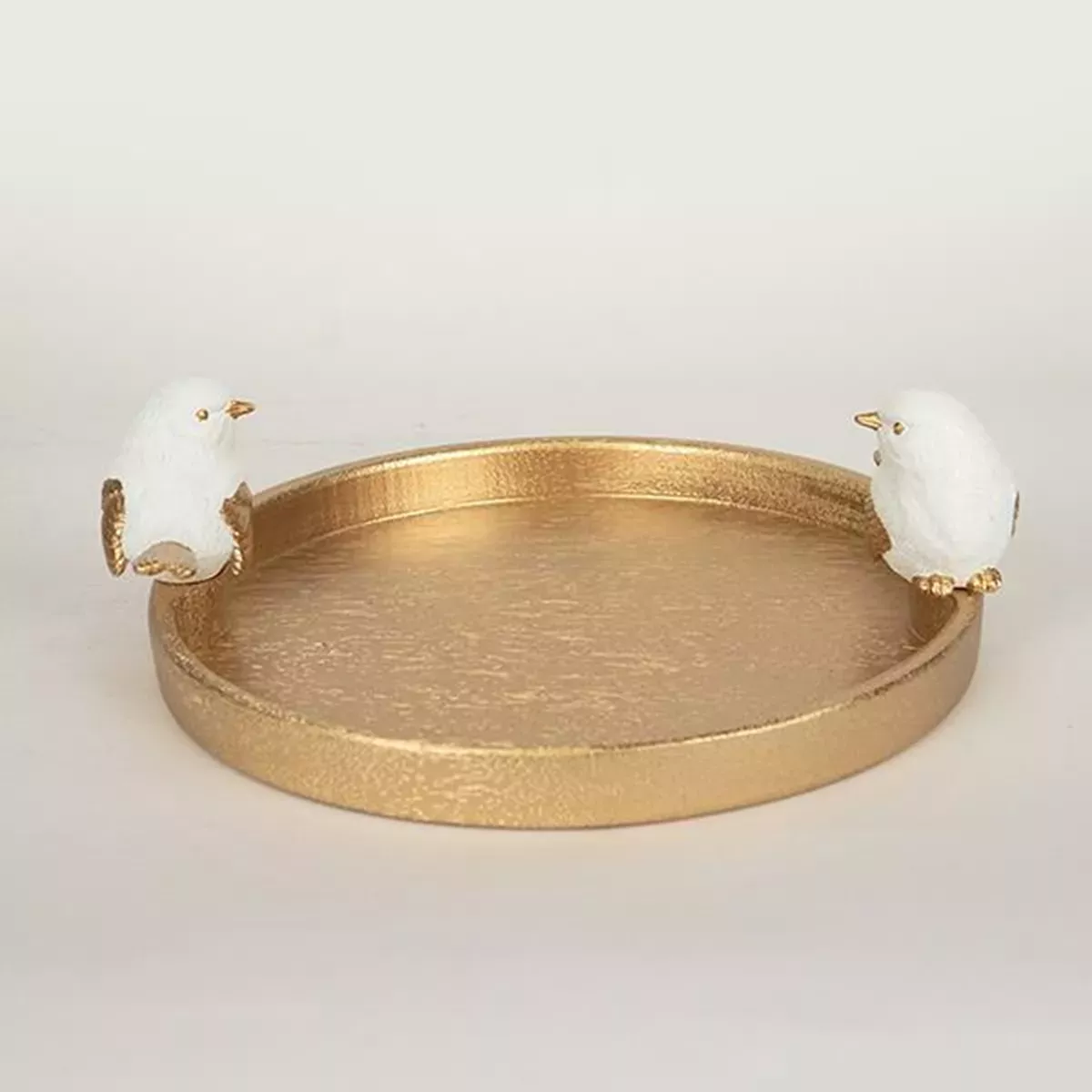ΔΙΑΚΟΣΜΗΤΙΚΗ ΠΙΑΤΕΛΑ ΜΕ ΠΟΥΛΙ, ΞΥΛΙΝΗ, ΛΕΥΚΗ-ΧΡΥΣΗ, 30.9x28x9.5cm Estheti