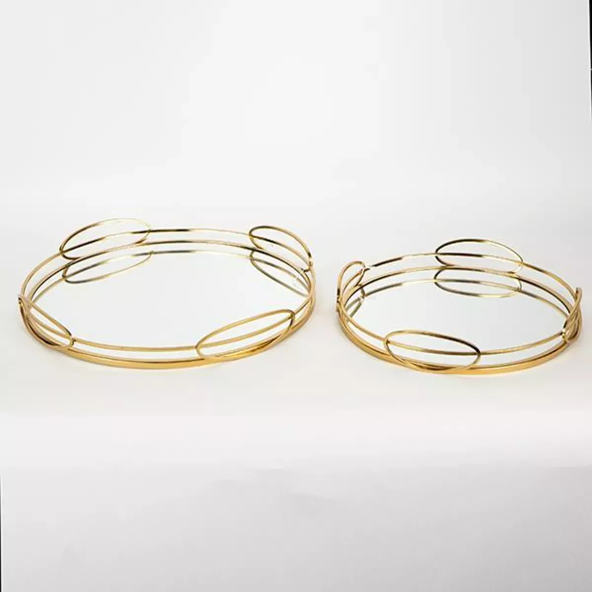 ΔΙΣΚΟΣ ΜΕΤΑΛΛΙΚΟΣ, ΜΕ ΚΑΘΡΕΦΤΗ, ΧΡΥΣΟ ΧΡΩΜΑ, ΣΕΤ 2 ΤΜΧ, L:D39x5, S:D31x5x5cm Estheti