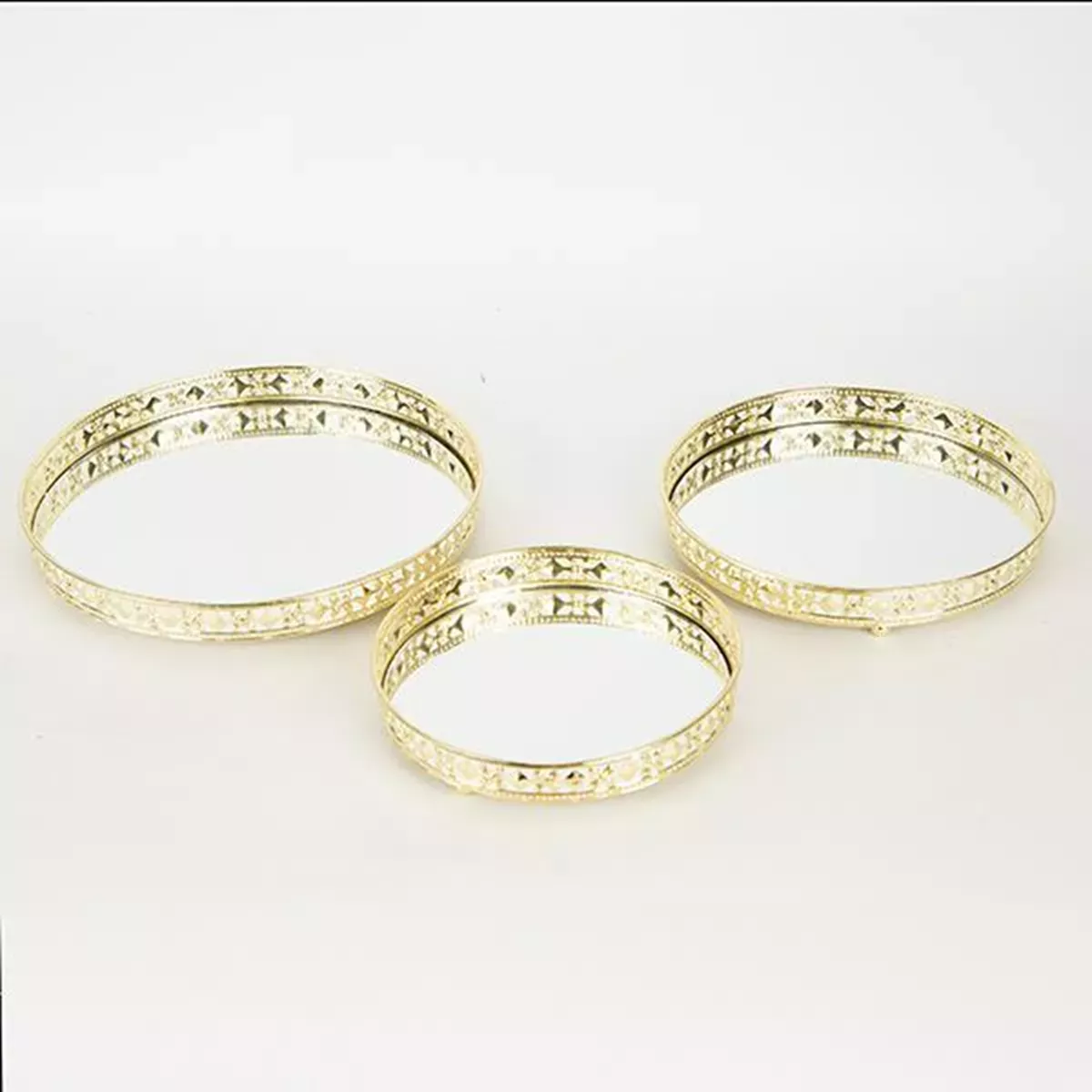 ΔΙΣΚΟΣ ΜΕΤΑΛΛΙΚΟΣ, ΜΕ ΚΑΘΡΕΦΤΗ, ΧΡΥΣΟ ΧΡΩΜΑ, ΣΕΤ 3 ΤΜΧ, L:D25x4 ,M:D21x4, S:D17x4cm Estheti