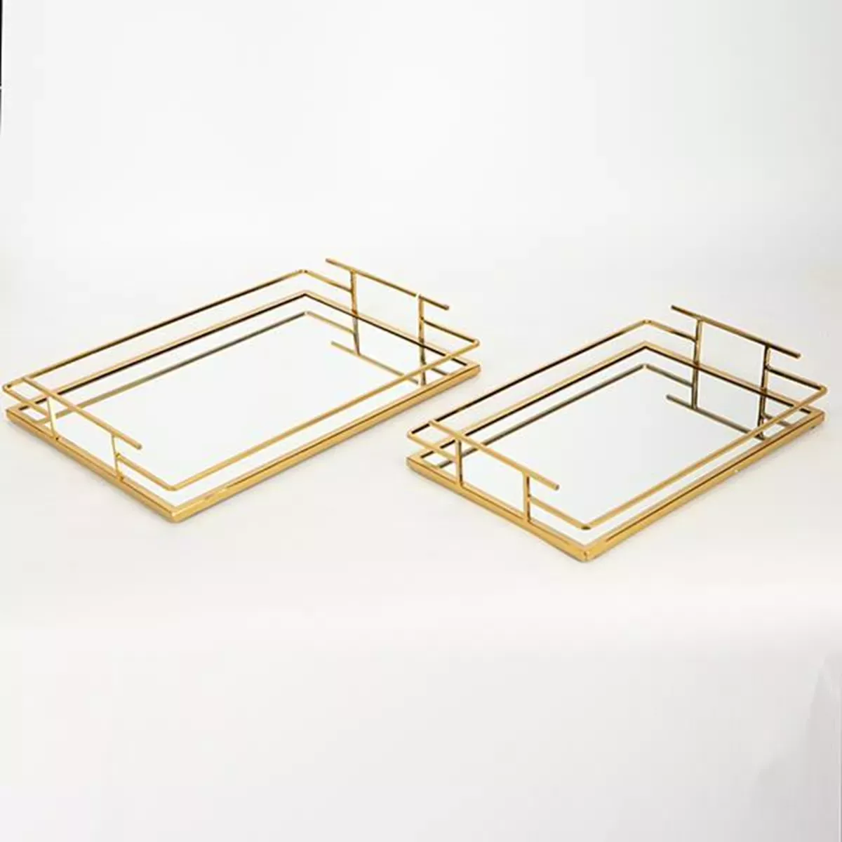 ΔΙΣΚΟΣ ΜΕΤΑΛΛΙΚΟΣ, ΜΕ ΚΑΘΡΕΦΤΗ, ΧΡΥΣΟ ΧΡΩΜΑ, ΣΕΤ 2 ΤΜΧ, L:35x25x5.5, S:30.5x20x5.5cm Estheti