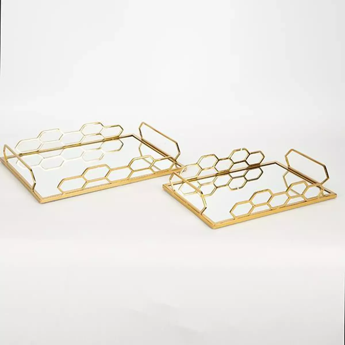ΔΙΣΚΟΣ ΜΕΤΑΛΛΙΚΟΣ, ΜΕ ΚΑΘΡΕΦΤΗ, ΧΡΥΣΟ ΧΡΩΜΑ, ΣΕΤ 2 ΤΜΧ, L:35x25x5.5, S:30.5x20x5.5cm Estheti