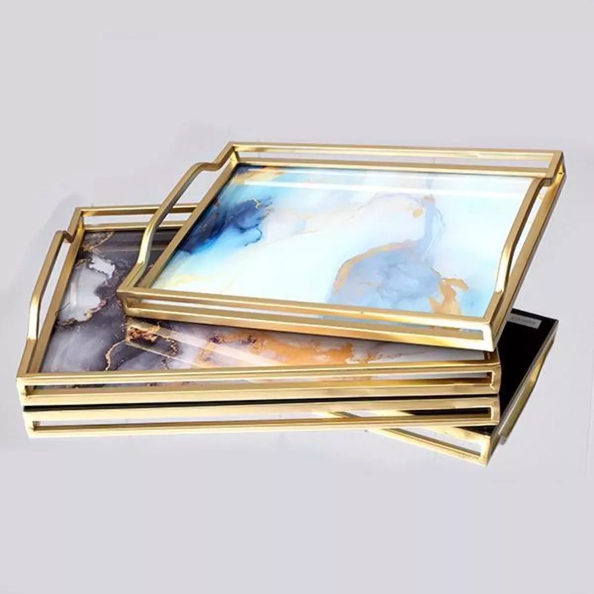 ΔΙΣΚΟΣ ΜΕΤΑΛΛΙΚΟΣ, ΜΕ ΓΥΑΛΙ, ΧΡΥΣΟ-ΜΠΛΕ, ΣΕΤ 2 ΤΜΧ, L:40x30x5.5, S:35x25x4.5cm Estheti
