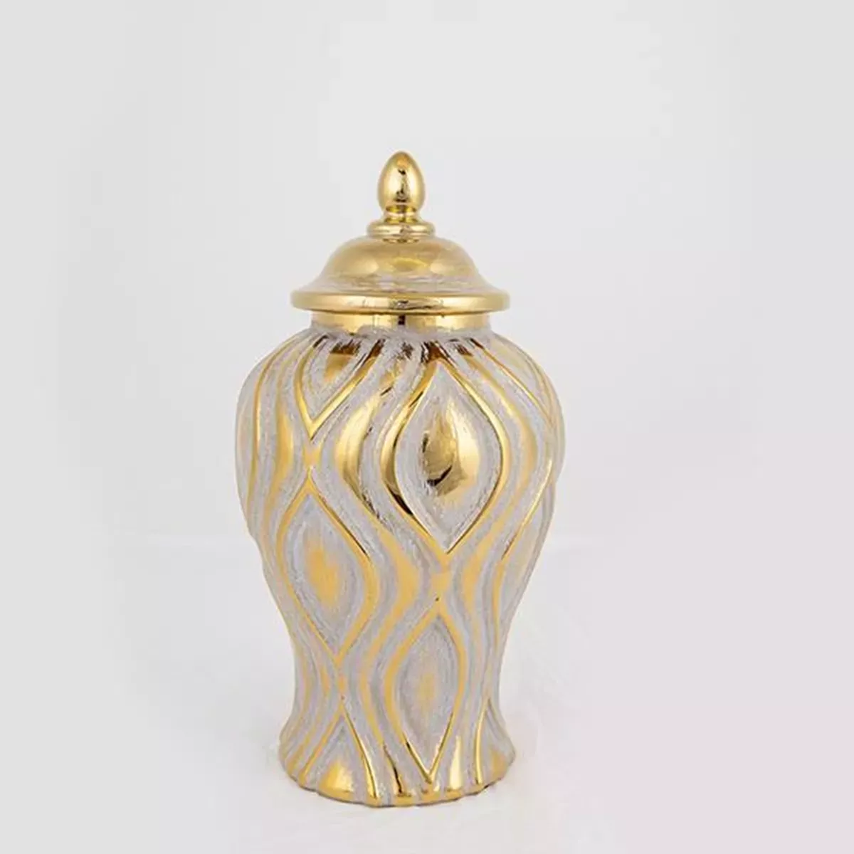 ΒΑΖΟ, ΚΕΡΑΜΙΚΟ, ΑΣΗΜΙ & ΧΡΥΣΟ, 16.2x16.2x30.6cm