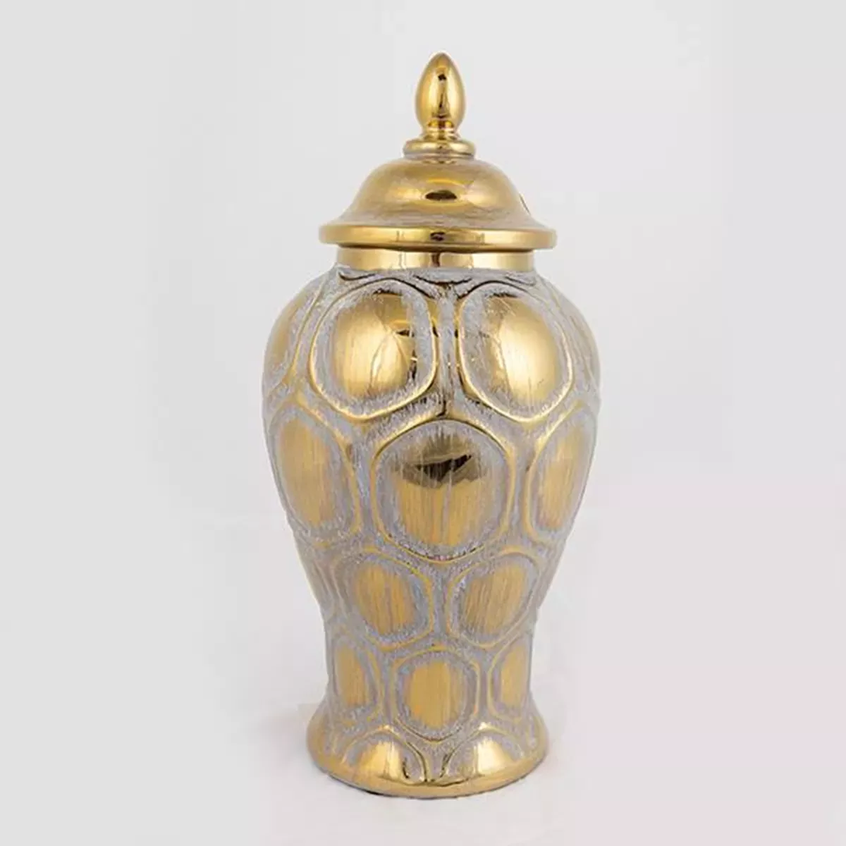 ΒΑΖΟ, ΚΕΡΑΜΙΚΟ, ΓΚΡΙ & ΧΡΥΣΟ, 16x16x33.8cm