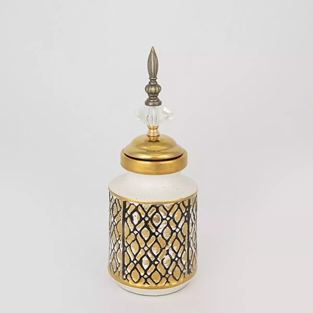 ΒΑΖΟ ΜΕ ΚΑΠΑΚΙ, ΚΕΡΑΜΙΚΟ, ΑΣΠΡΟ & ΧΡΥΣΟ, 12x12x28cm Estheti