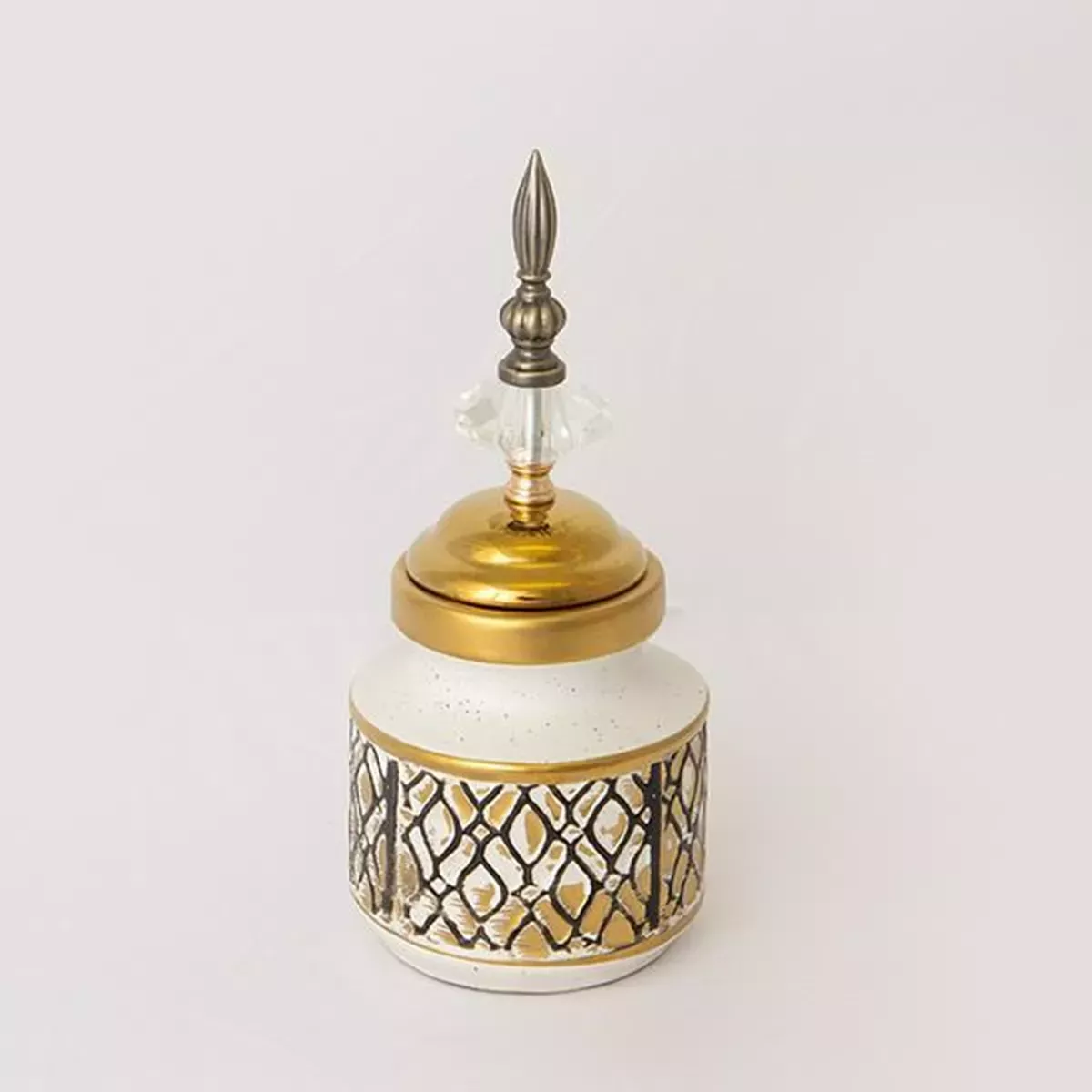 ΒΑΖΟ ΜΕ ΚΑΠΑΚΙ, ΚΕΡΑΜΙΚΟ, ΑΣΠΡΟ & ΧΡΥΣΟ, 12x12x22cm Estheti