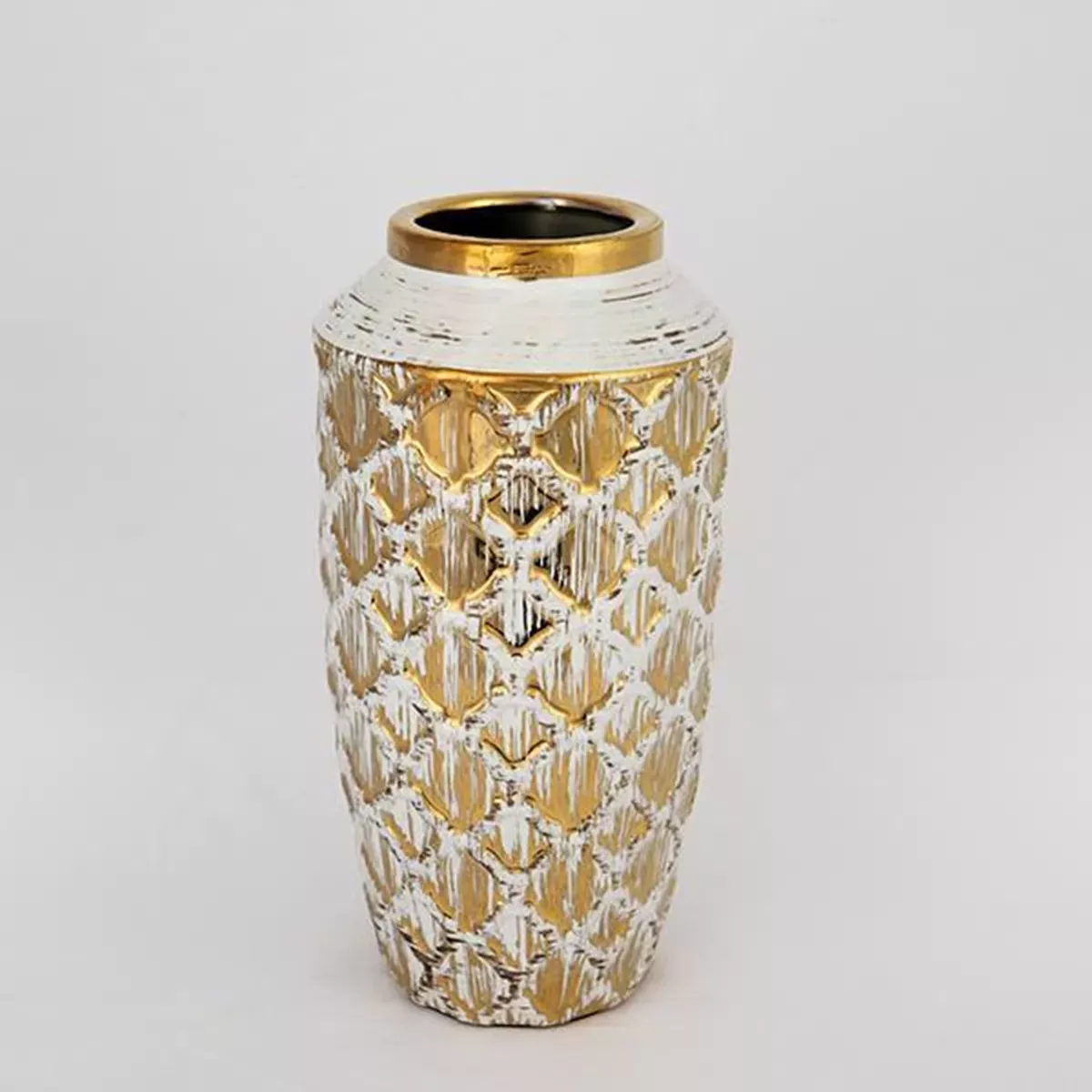 ΒΑΖΟ , ΚΕΡΑΜΙΚΟ, ΛΕΥΚΟ & ΧΡΥΣΟ, 13x13x25cm Estheti