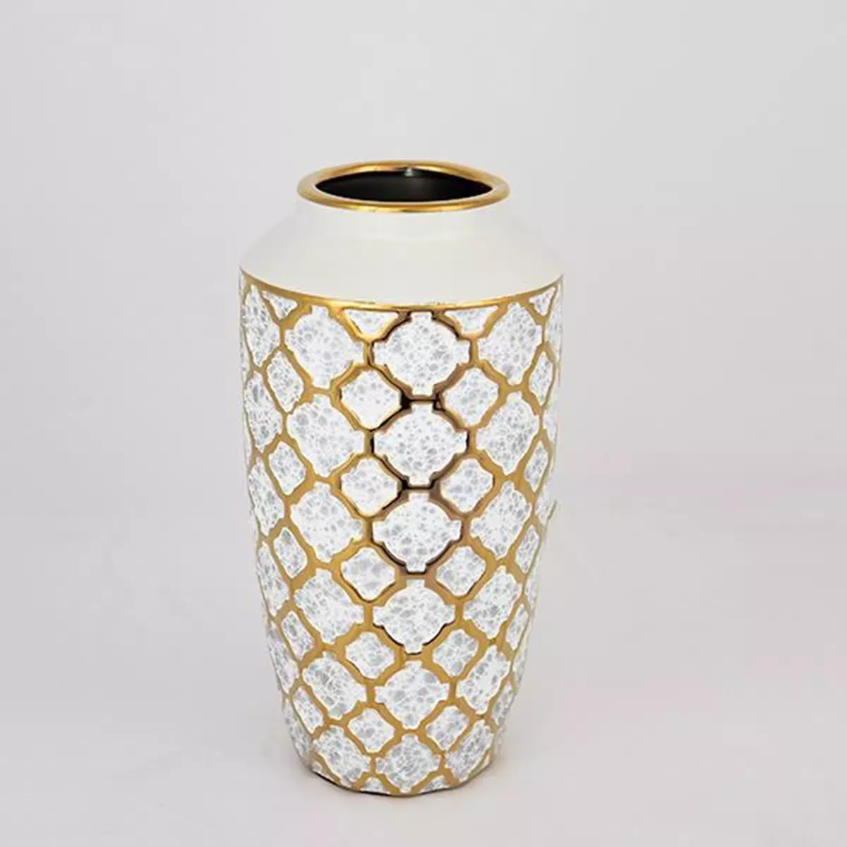 ΒΑΖΟ , ΚΕΡΑΜΙΚΟ, ΛΕΥΚΟ & ΧΡΥΣΟ, 13x13x25cm Estheti