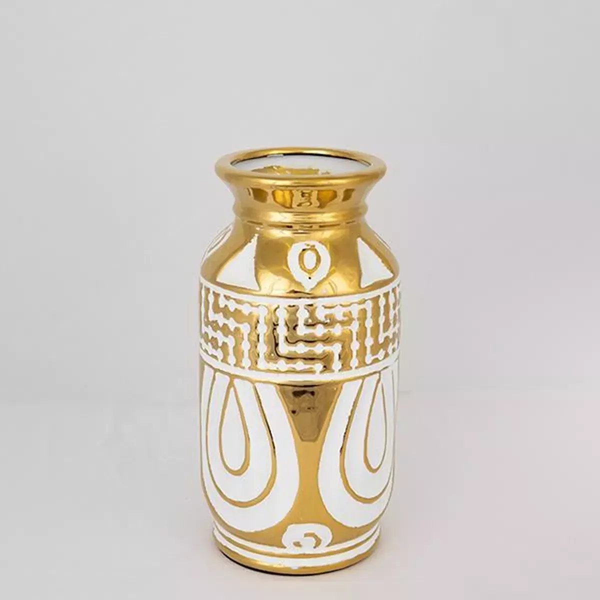 ΒΑΖΟ , ΚΕΡΑΜΙΚΟ, ΛΕΥΚΟ & ΧΡΥΣΟ, 14x14x28cm Estheti