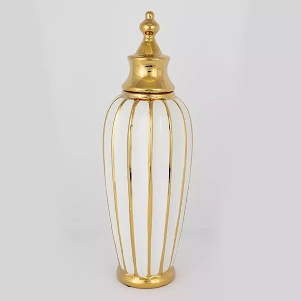 ΒΑΖΟ ΜΕ ΚΑΠΑΚΙ, ΚΕΡΑΜΙΚΟ, ΛΕΥΚΟ & ΧΡΥΣΟ,15x45.5cm Estheti