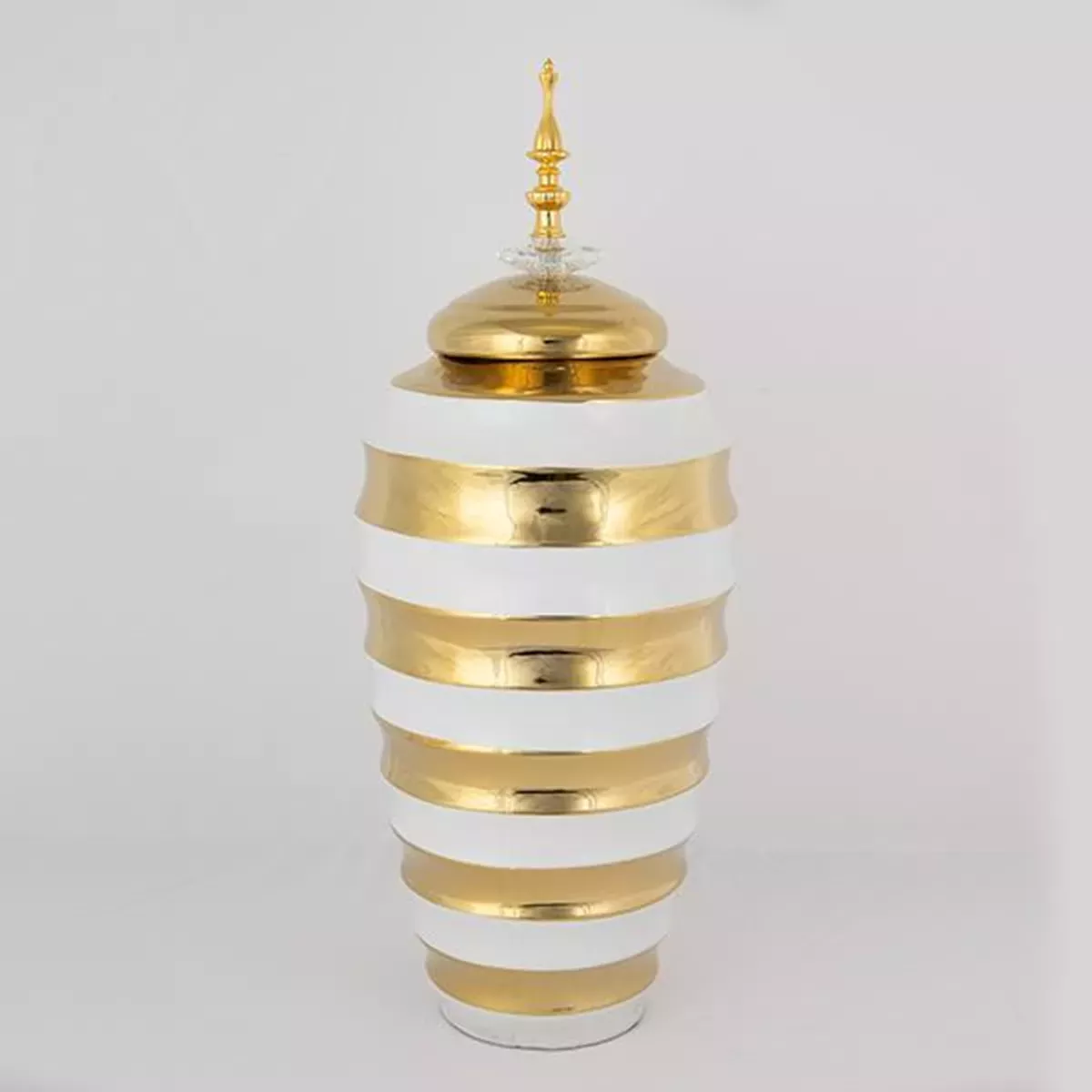 ΒΑΖΟ ΜΕ ΚΑΠΑΚΙ, ΚΕΡΑΜΙΚΟ, ΛΕΥΚΟ & ΧΡΥΣΟ , 18.5x48.5cm Estheti