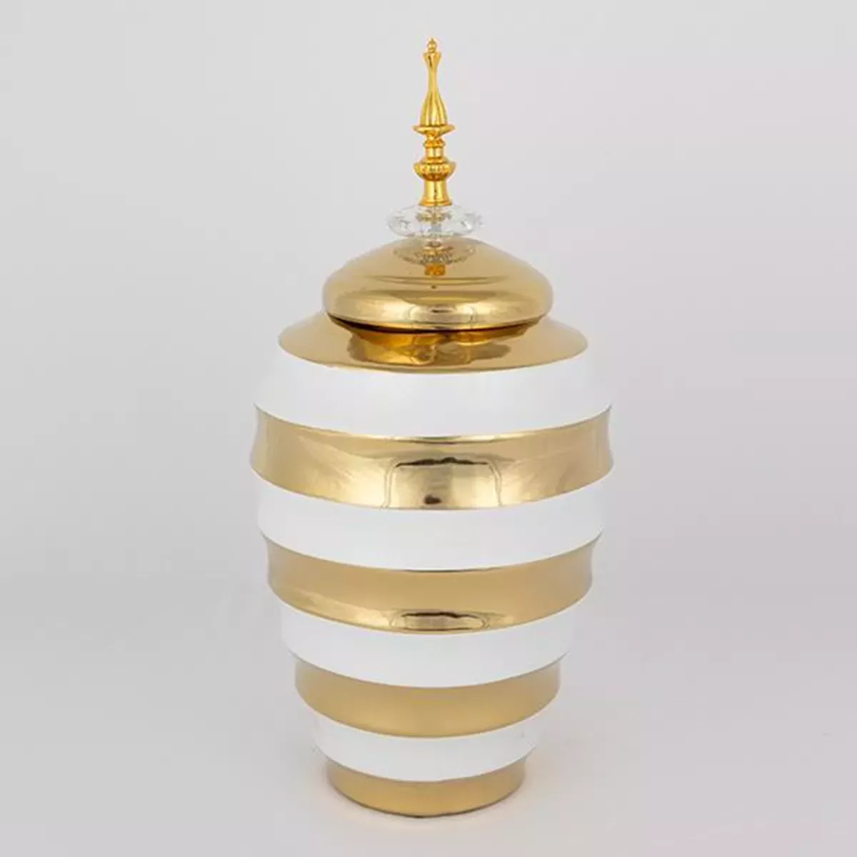 ΒΑΖΟ ΜΕ ΚΑΠΑΚΙ, ΚΕΡΑΜΙΚΟ, ΛΕΥΚΟ & ΧΡΥΣΟ , 19x39.5cm Estheti