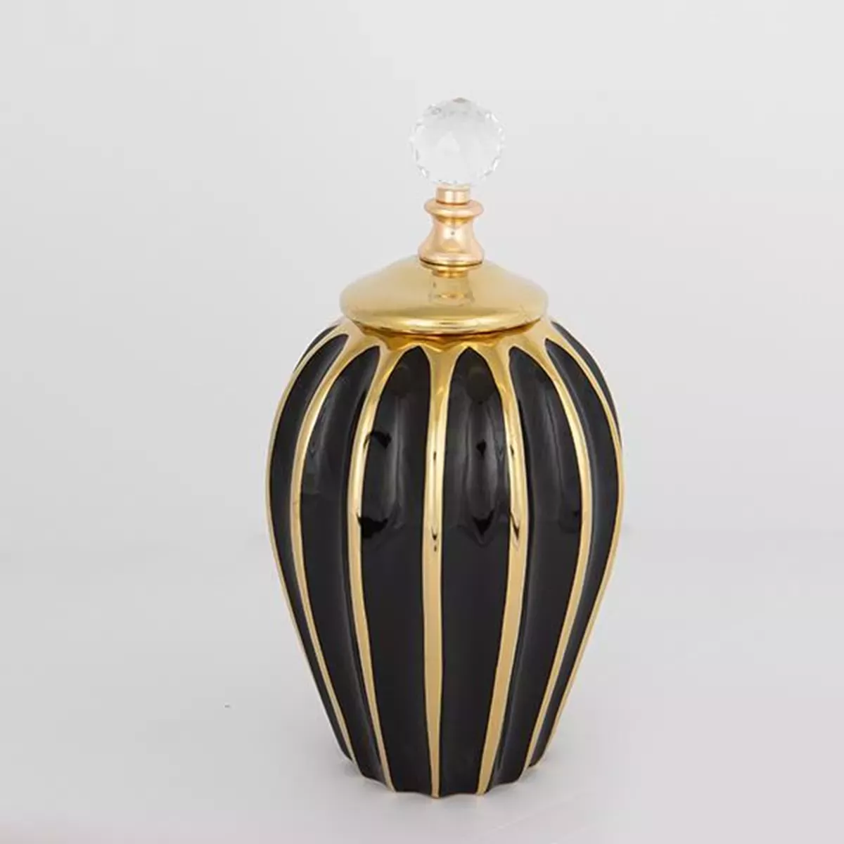 ΒΑΖΟ ΜΕ ΚΑΠΑΚΙ, ΚΕΡΑΜΙΚΟ, ΜΑΥΡΟ & ΧΡΥΣΟ,15x31cm Estheti