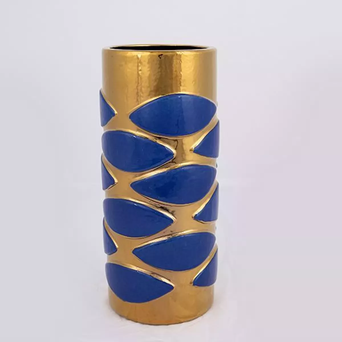 ΒΑΖΟ, ΚΕΡΑΜΙΚΟ, ΜΠΛΕ-ΧΡΥΣΟ,13x13x31cm Estheti