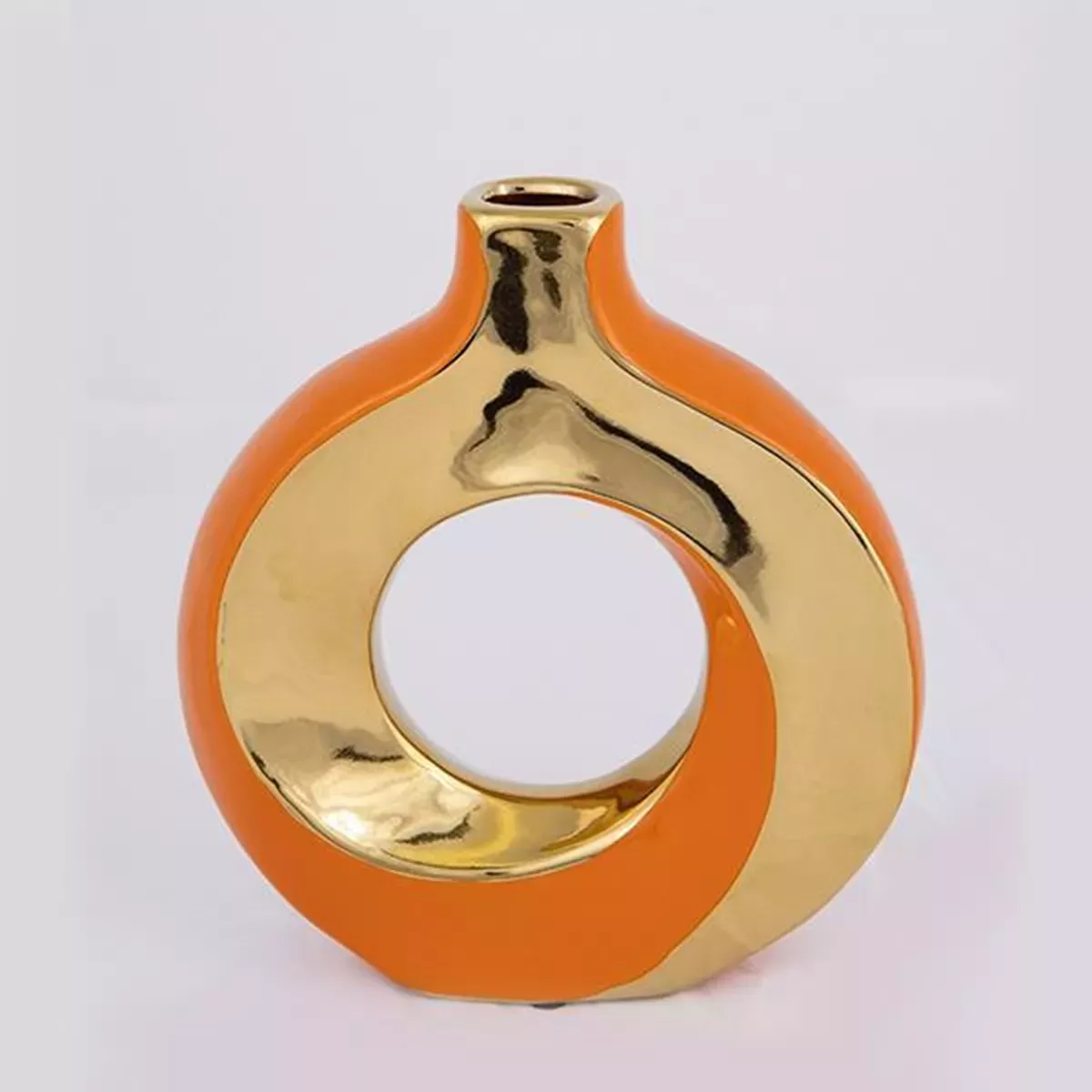 ΒΑΖΟ, ΚΕΡΑΜΙΚΟ, ΠΟΡΤΟΚΑΛΙ-ΧΡΥΣΟ,17.5x4.5x19cm Estheti