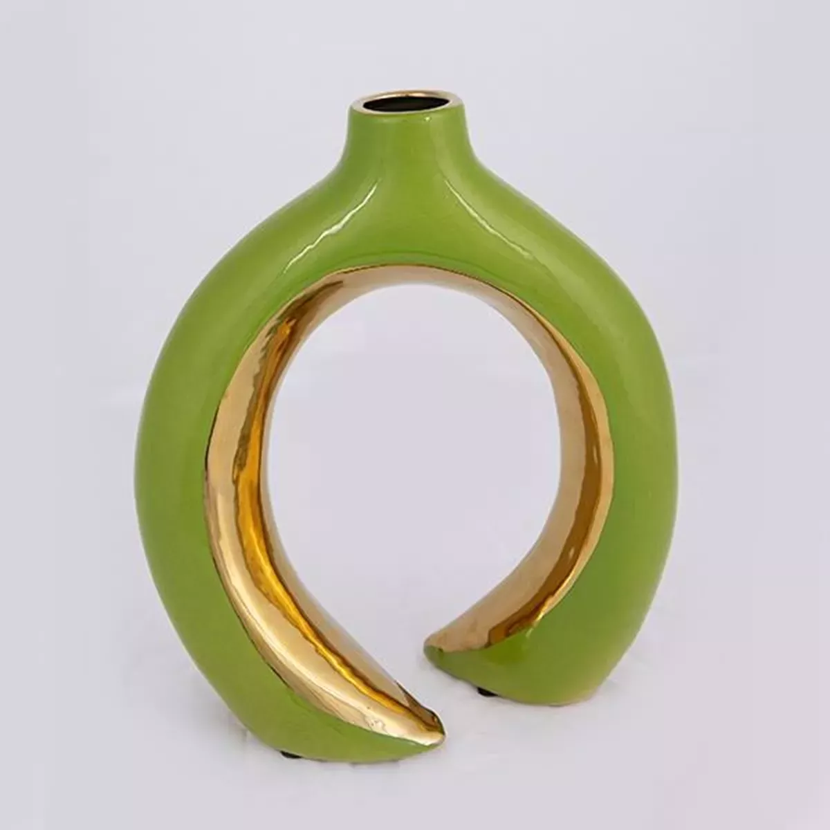 ΒΑΖΟ, ΚΕΡΑΜΙΚΟ, ΠΡΑΣΙΝΟ-ΧΡΥΣΟ, 21x10.5x25cm Estheti
