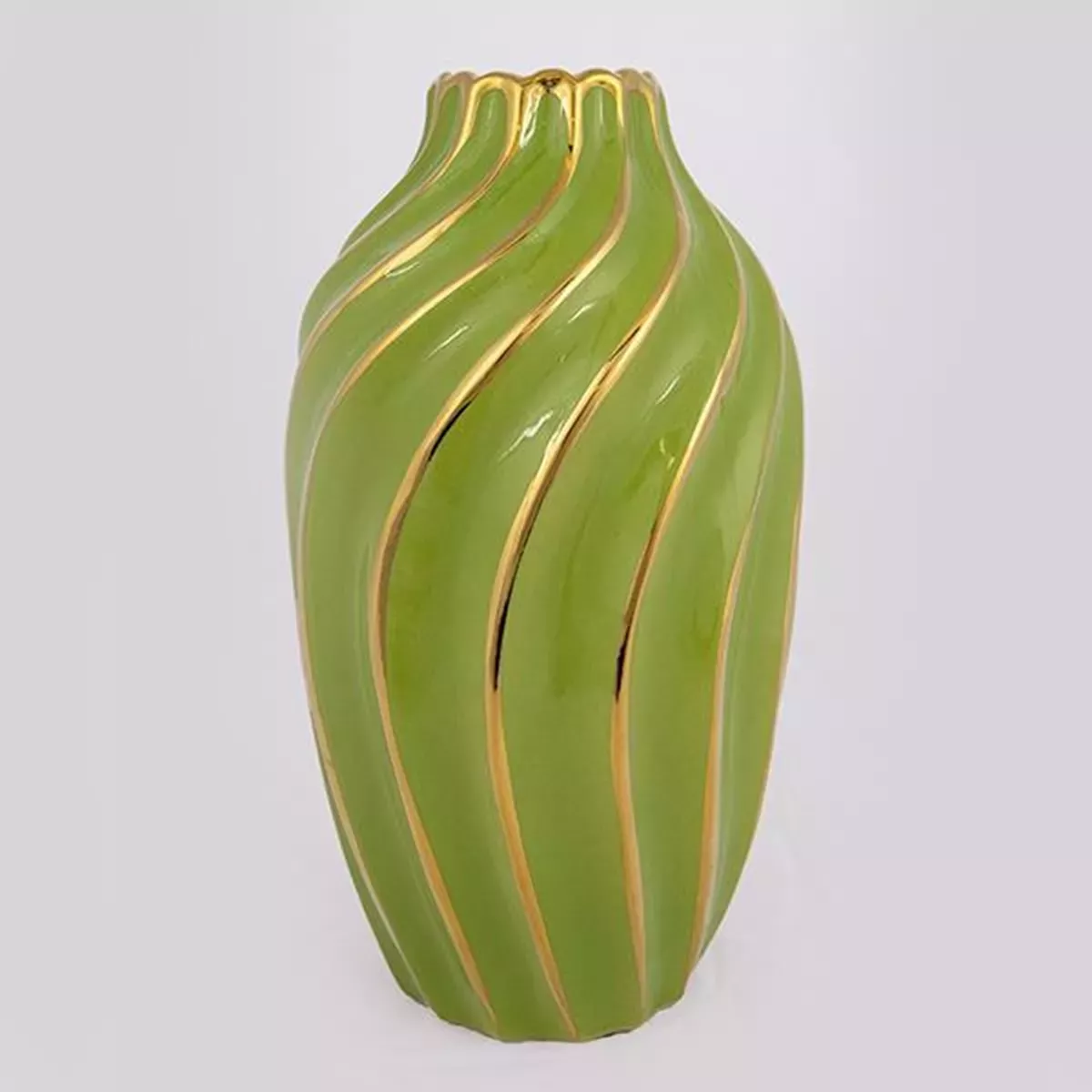 ΒΑΖΟ, ΚΕΡΑΜΙΚΟ, ΠΡΑΣΙΝΟ-ΧΡΥΣΟ,17x17x30.5cm