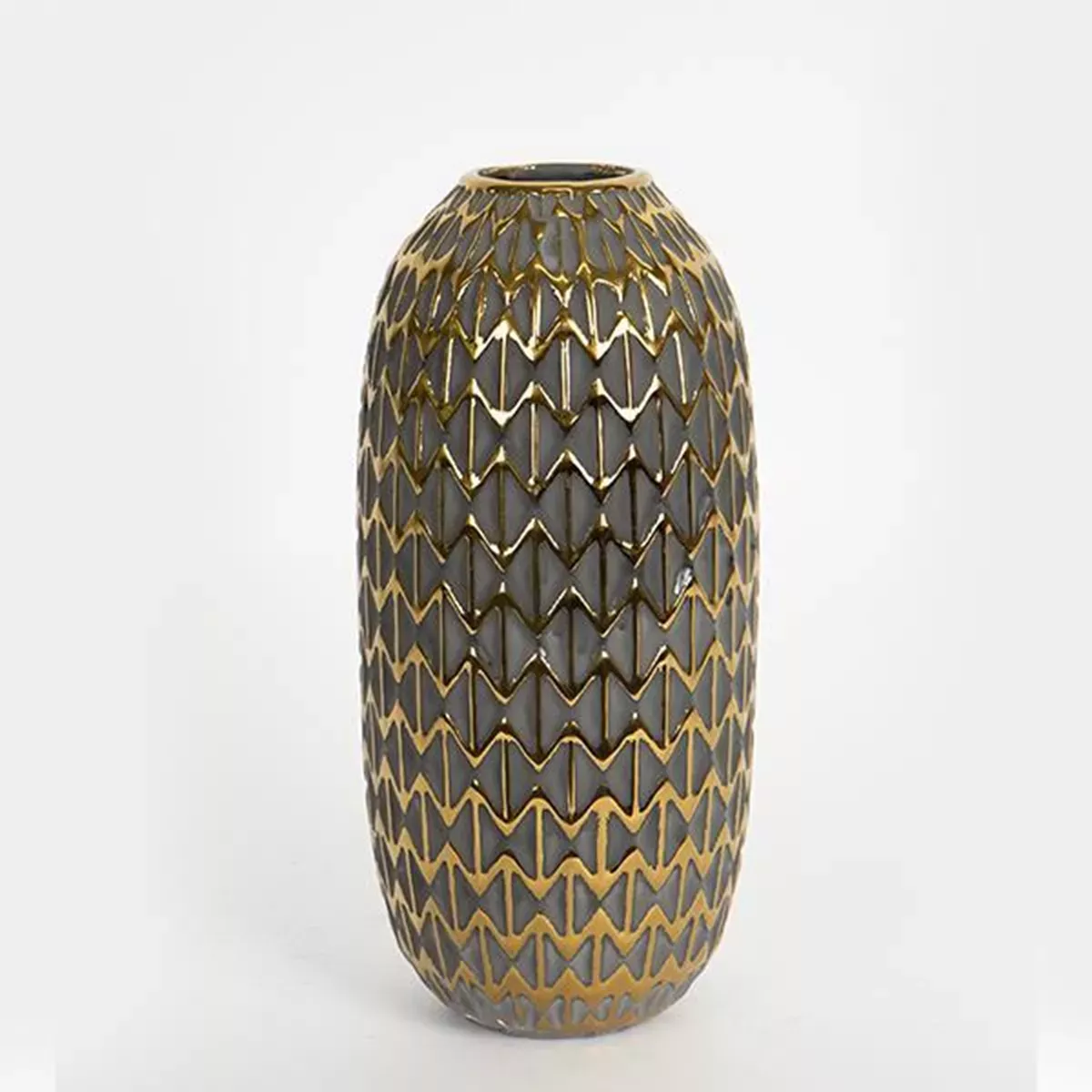 ΒΑΖΟ, ΚΕΡΑΜΙΚΟ, ΜΑΥΡΟ & ΧΡΥΣΟ,13.8x13.8x28.5cm Estheti
