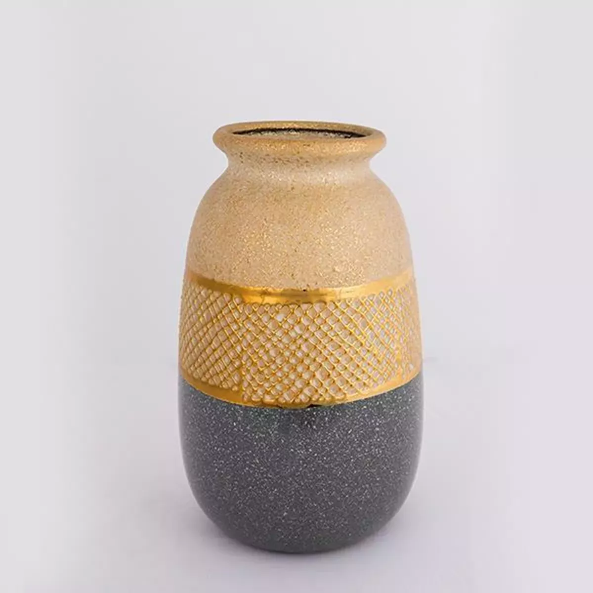 ΒΑΖΟ, ΚΕΡΑΜΙΚΟ, ΧΡΥΣΟ & ΓΚΡΙ, 15.5x15.5x25.5cm