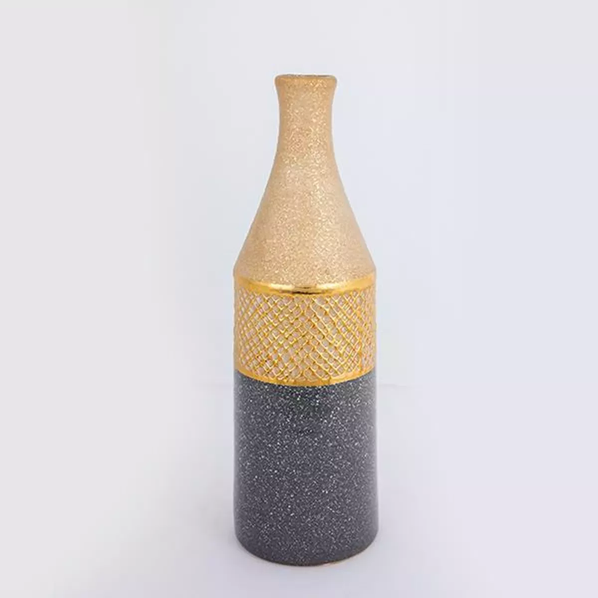 ΒΑΖΟ, ΚΕΡΑΜΙΚΟ, ΓΚΡΙ & ΧΡΥΣΟ, ΣΧΗΜΑ ΜΠΟΥΚΑΛΙ, 12x12x41cm Estheti