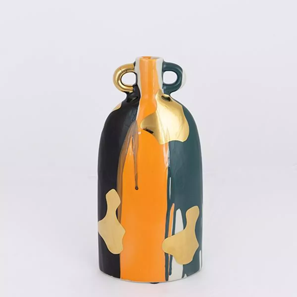 ΒΑΖΟ, ΚΕΡΑΜΙΚΟ, TEΡΡΑΚΟΤΤΑ-ΣΚΟΥΡΟ ΠΡΑΣΙΝΟ- ΧΡΥΣΟ,21.5x14x20.7cm Estheti