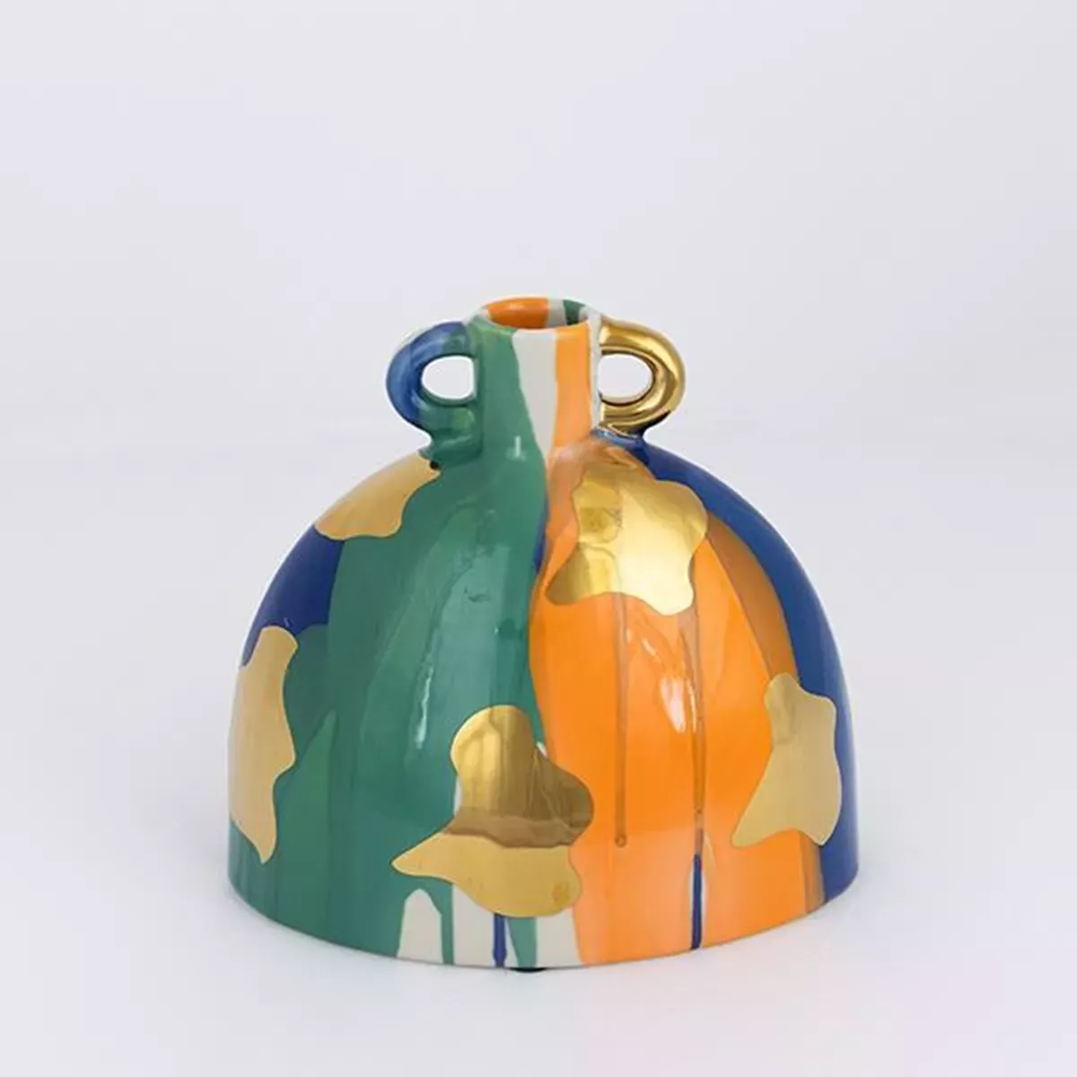 ΒΑΖΟ, ΚΕΡΑΜΙΚΟ, TEΡΡΑΚΟΤΤΑ-ΣΚΟΥΡΟ ΠΡΑΣΙΝΟ- ΧΡΥΣΟ,21.5x14x20.7cm Estheti